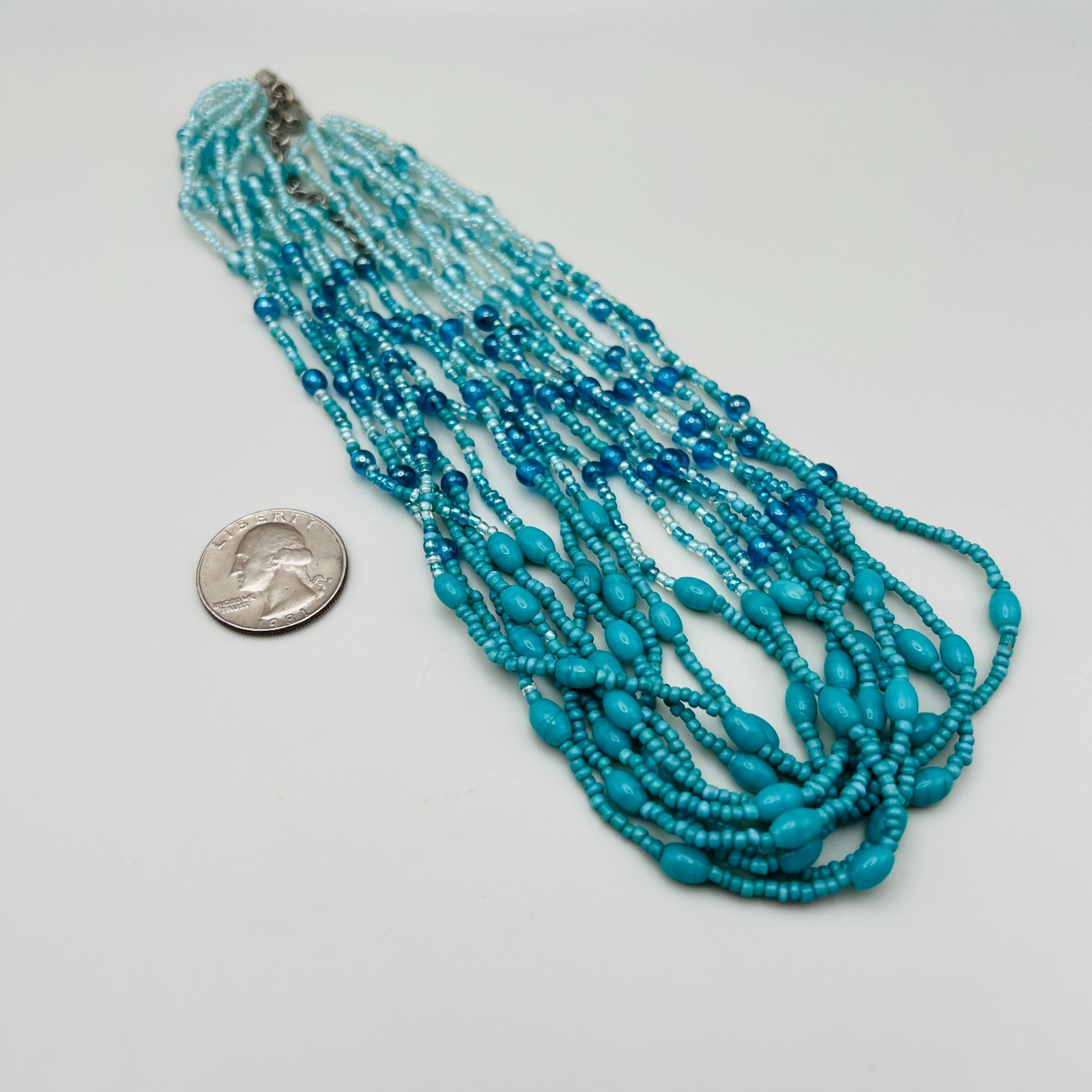 Multi Strand Beaded Necklace Turquoise Blue Layered Statement 18 inch