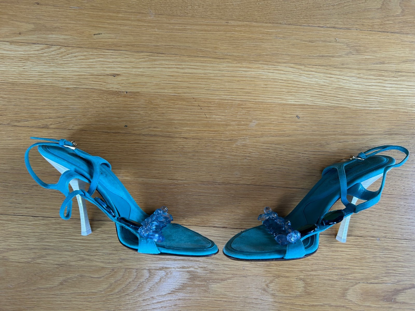 как выглядит CESARE PACIOTTI Teal Suede Crystal Sandals Dagger Charm Size 10 IT 40 Good Cond. фото