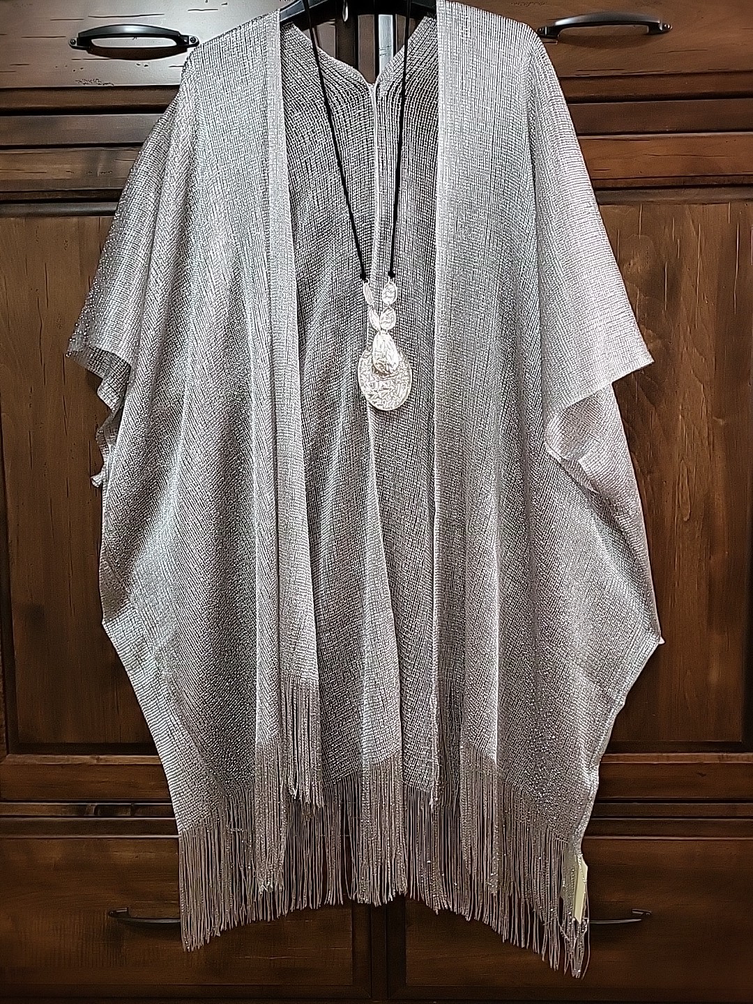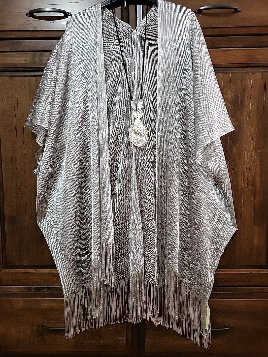 как выглядит Kimono NWT Silver Metallic Duster Plus One Size 1X 2X 3X 4X Artsy Boho Bust 90" фото