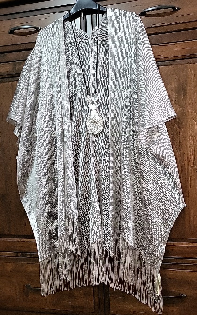 Kimono NWT Silver Metallic Duster Plus One Size 1X 2X 3X 4X Artsy Boho Bust 90