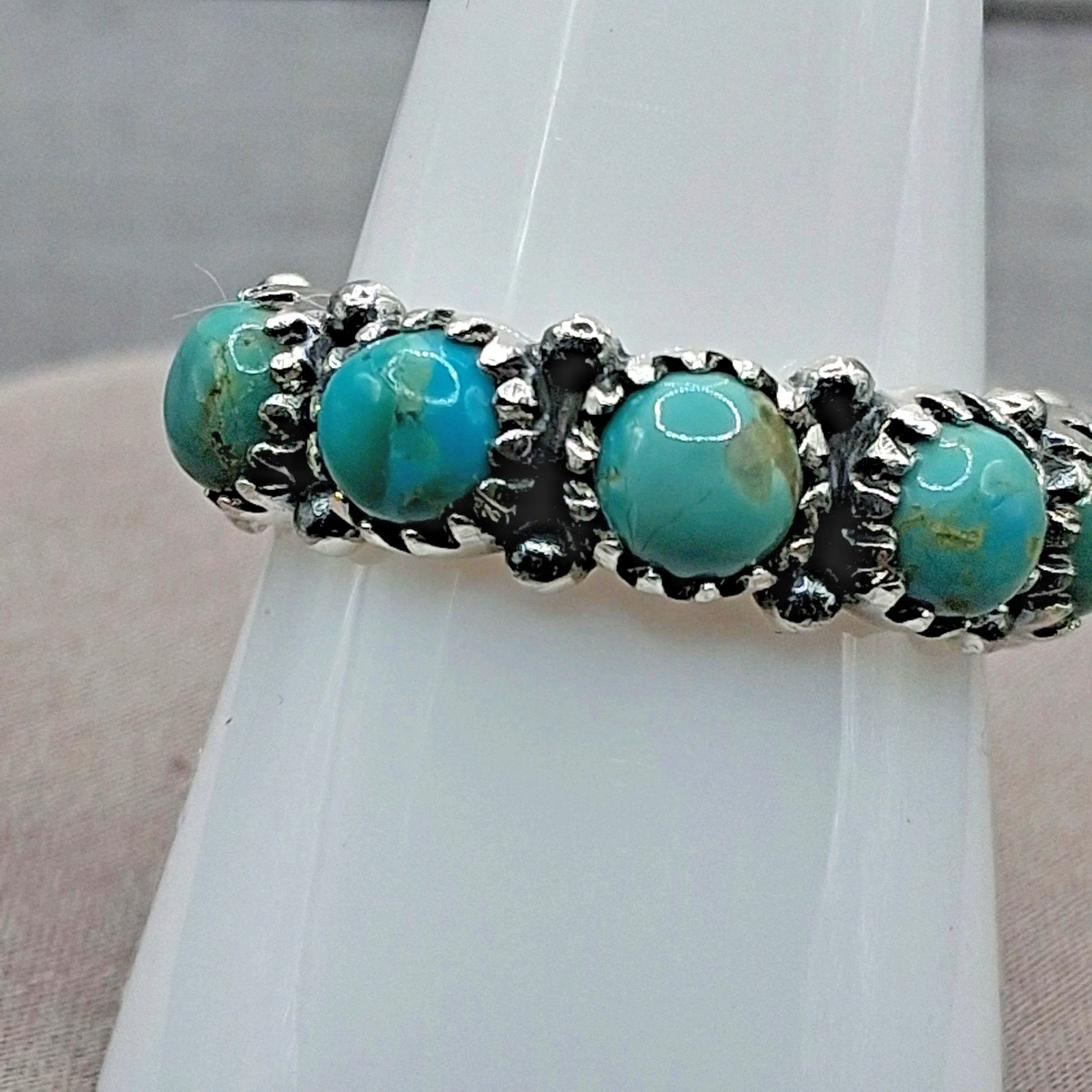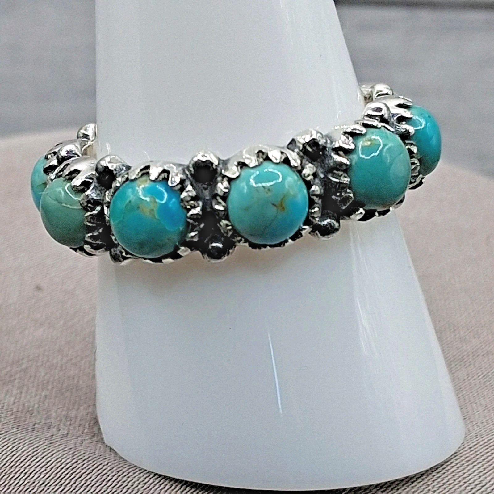 как выглядит Native Southwestern Style Turquoise Eternity Band Ring Size 9 Sterling Silver фото