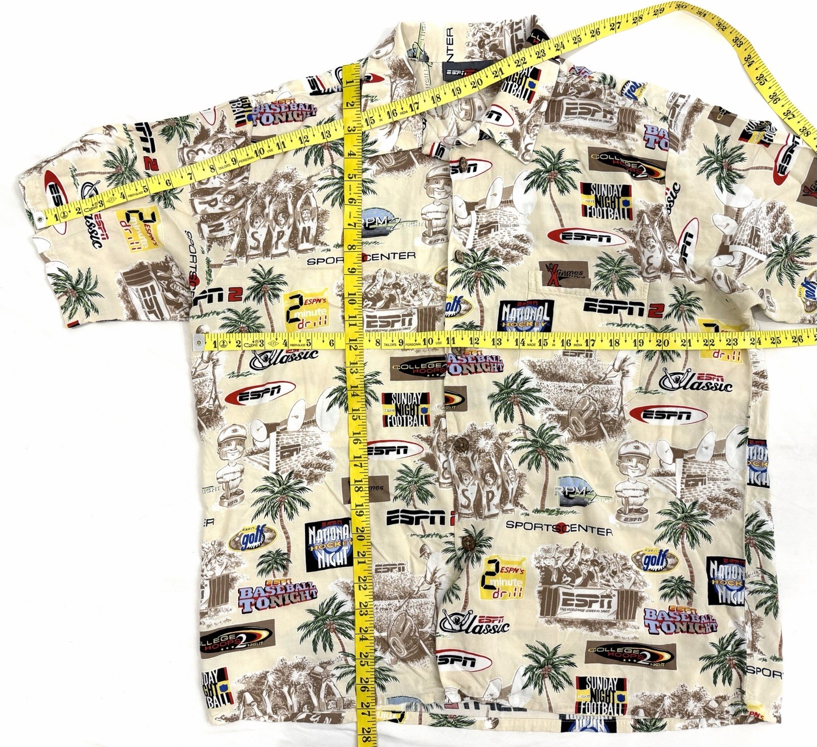 ESPN Zone Vintage 90 s Hawaiian Shirt Mens Large Print Button Down Short Sleeve