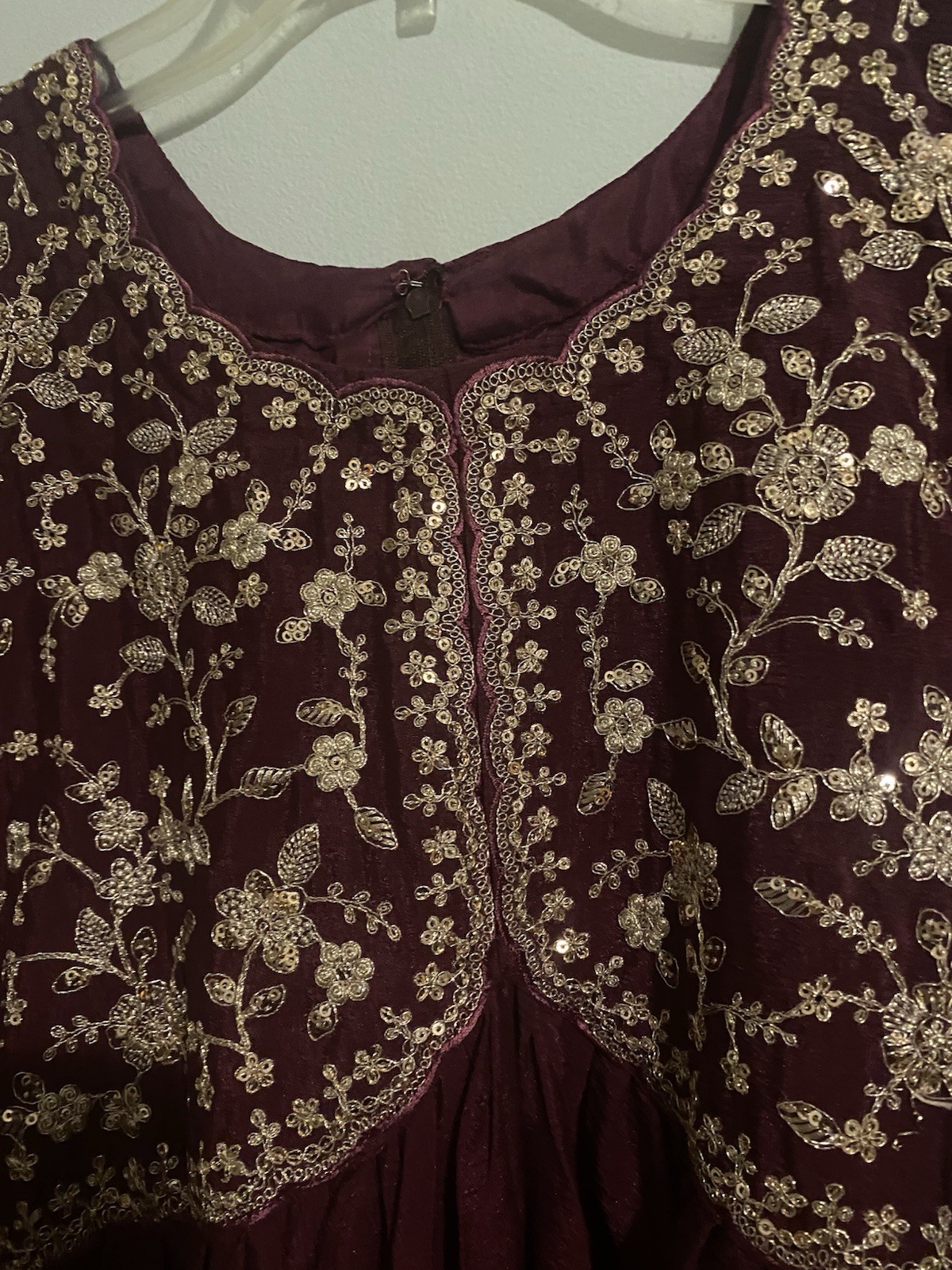 как выглядит Embroidered Maroon Silk Anarkali Women