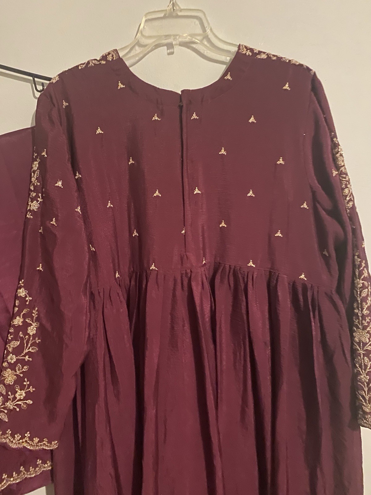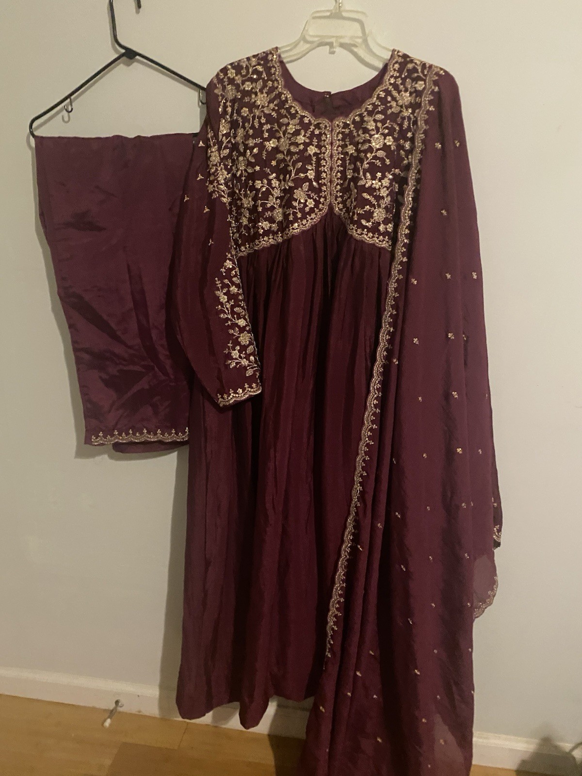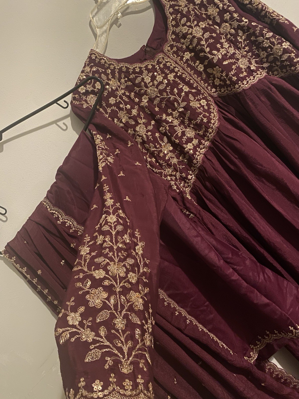 как выглядит Embroidered Maroon Silk Anarkali Womens Traditional Dupatta Set фото