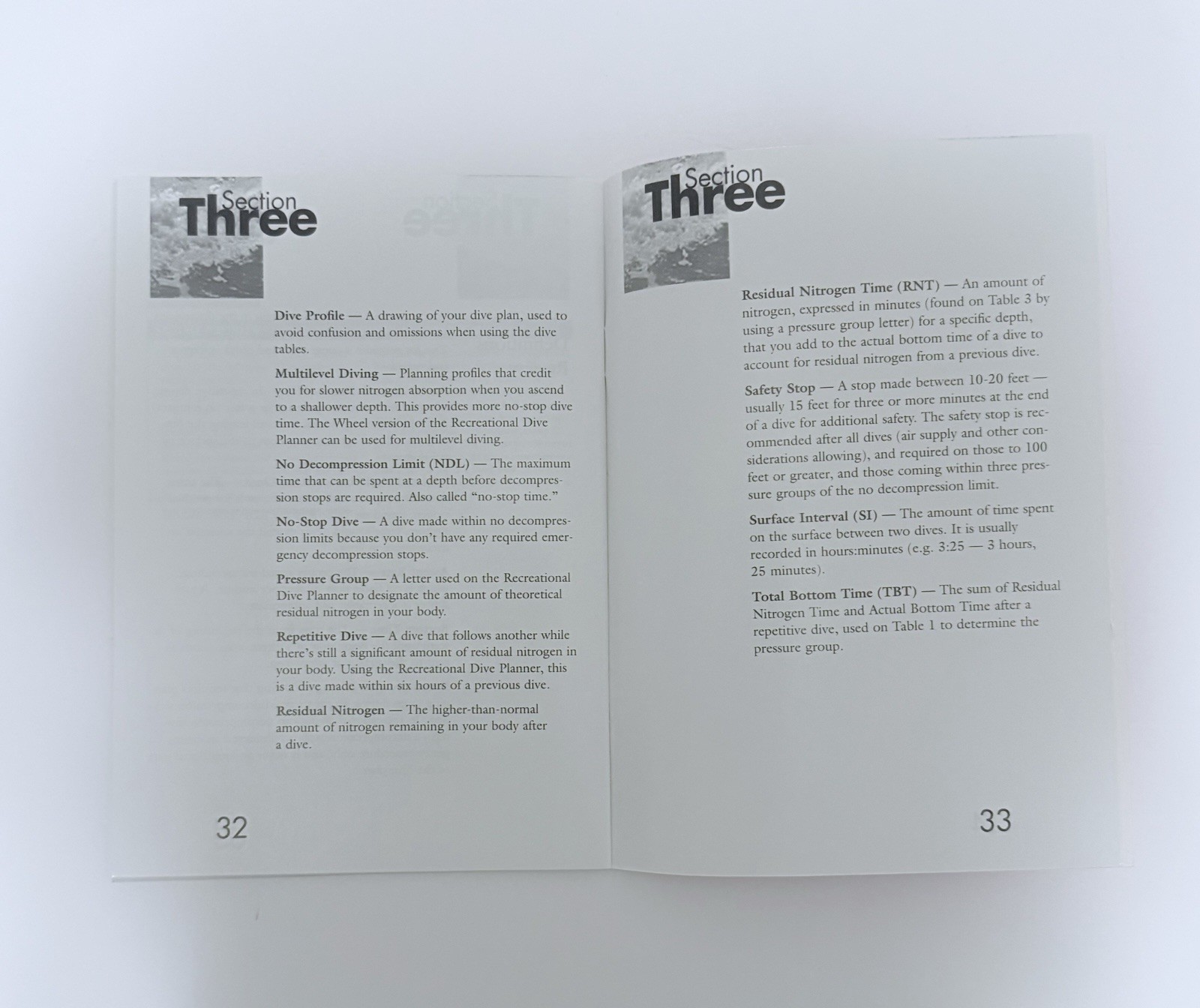 PADI Recreational Dive Planner / Instructions For Use PADI