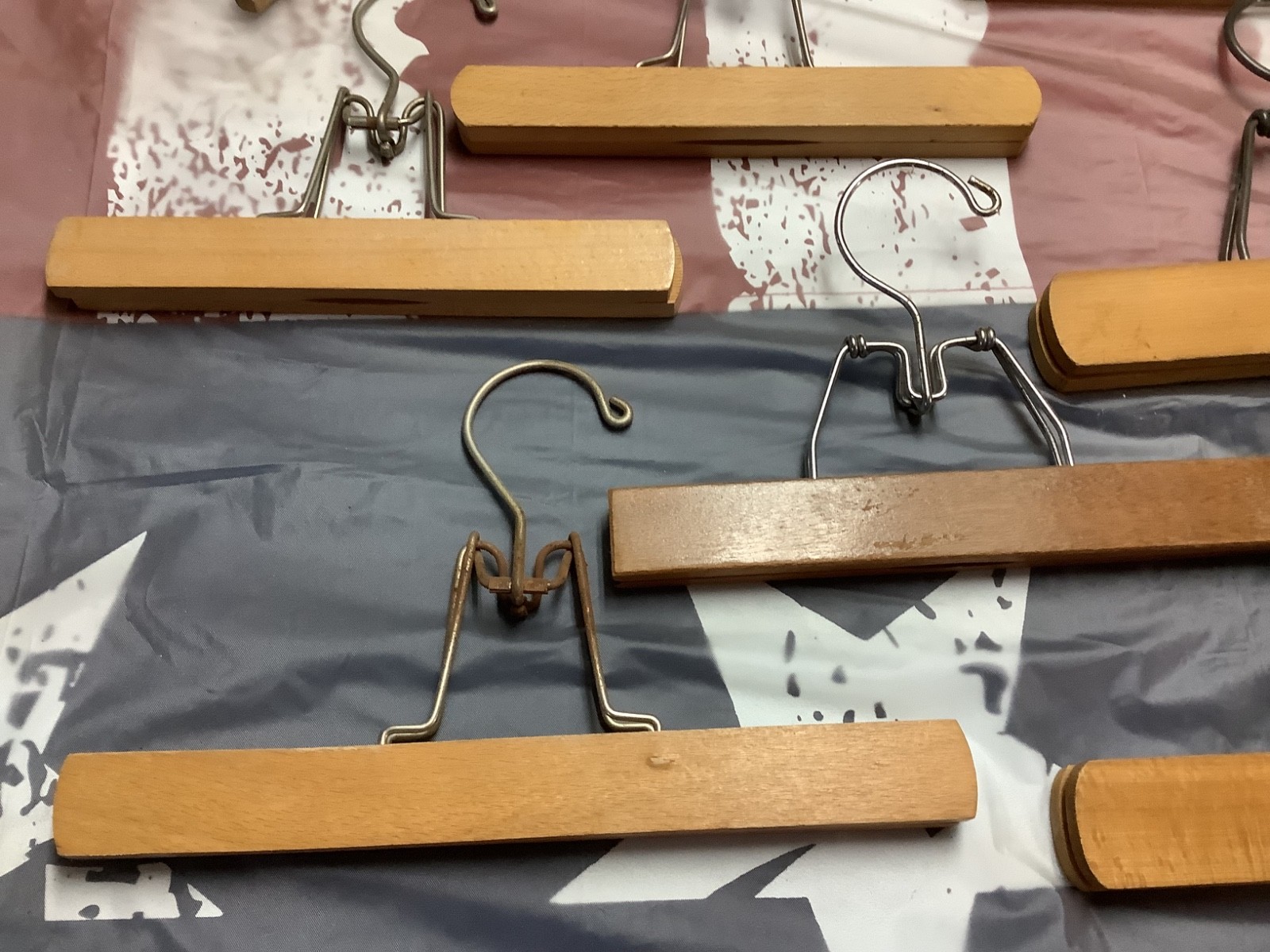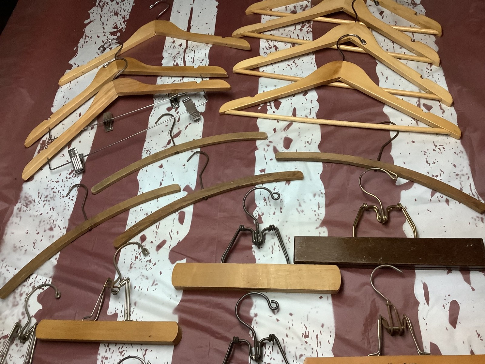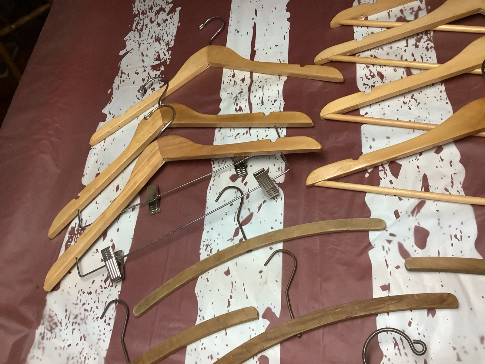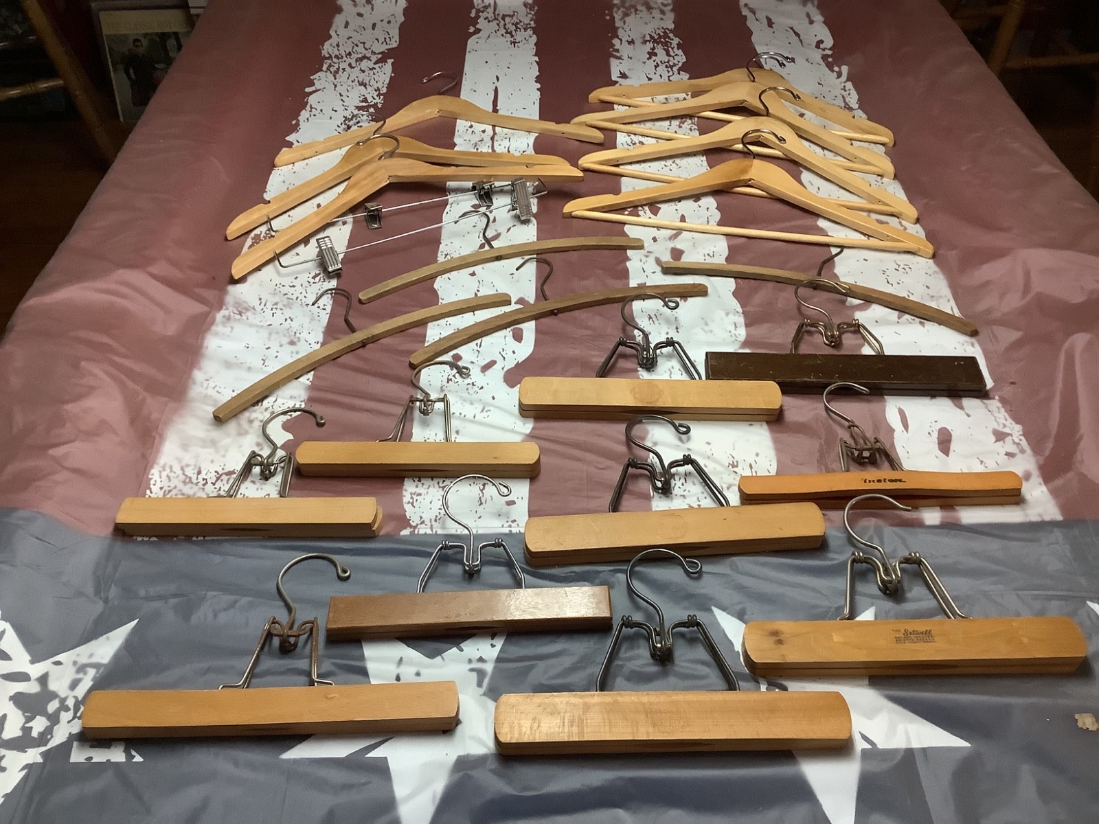 Lot of 24 Vintage Wooden Clothes Hangers, Some Advertising, Hotel Gibson