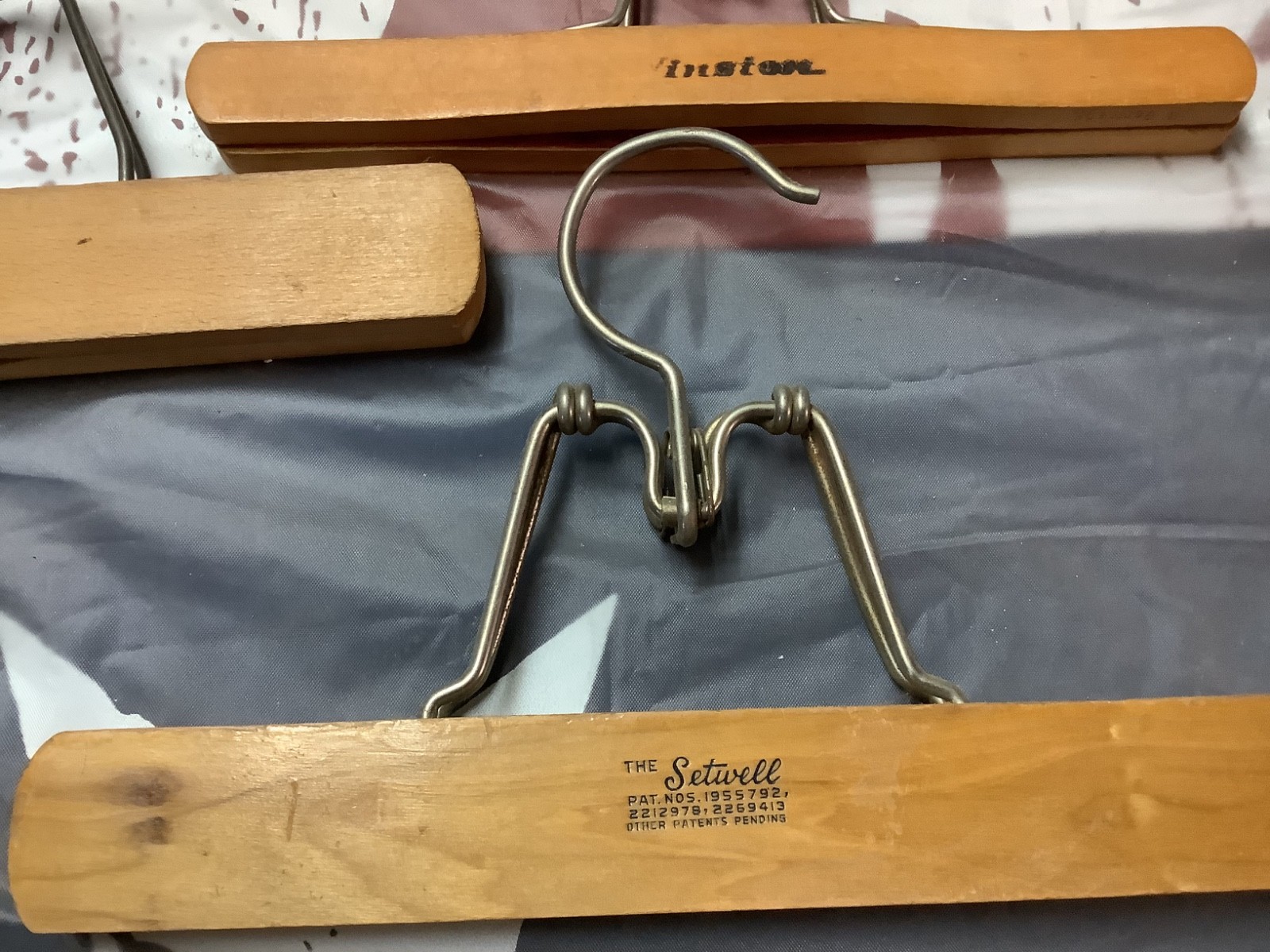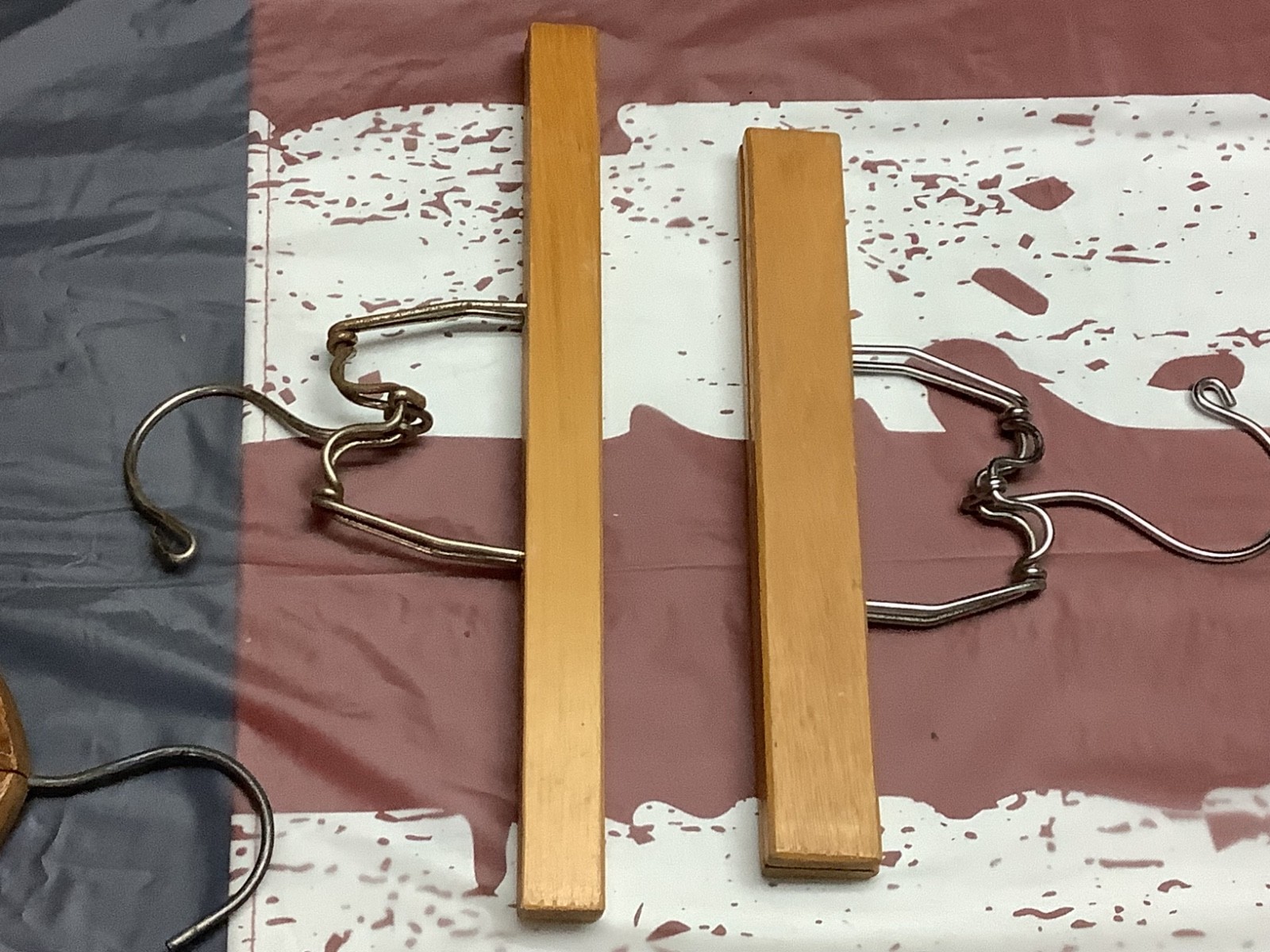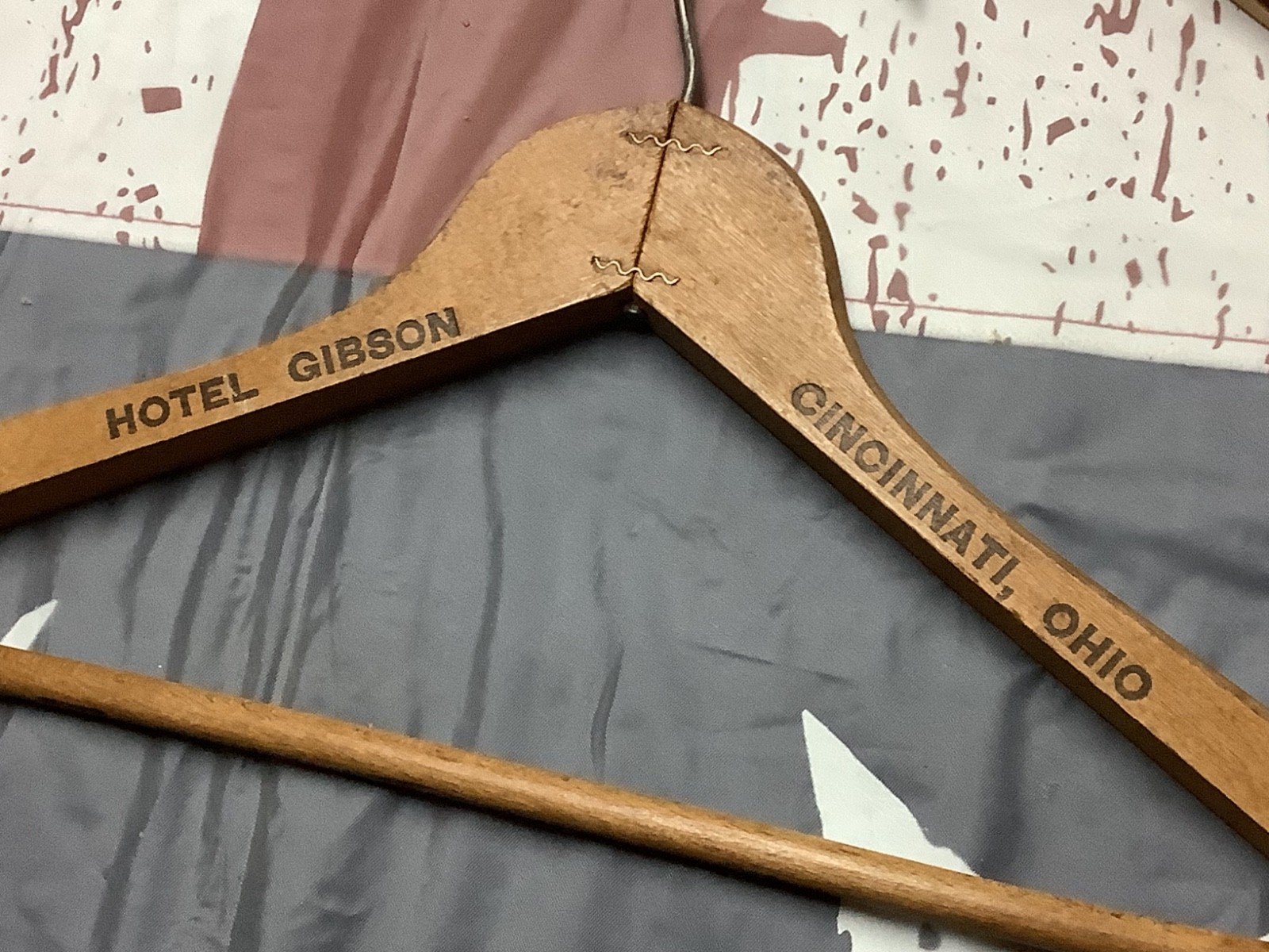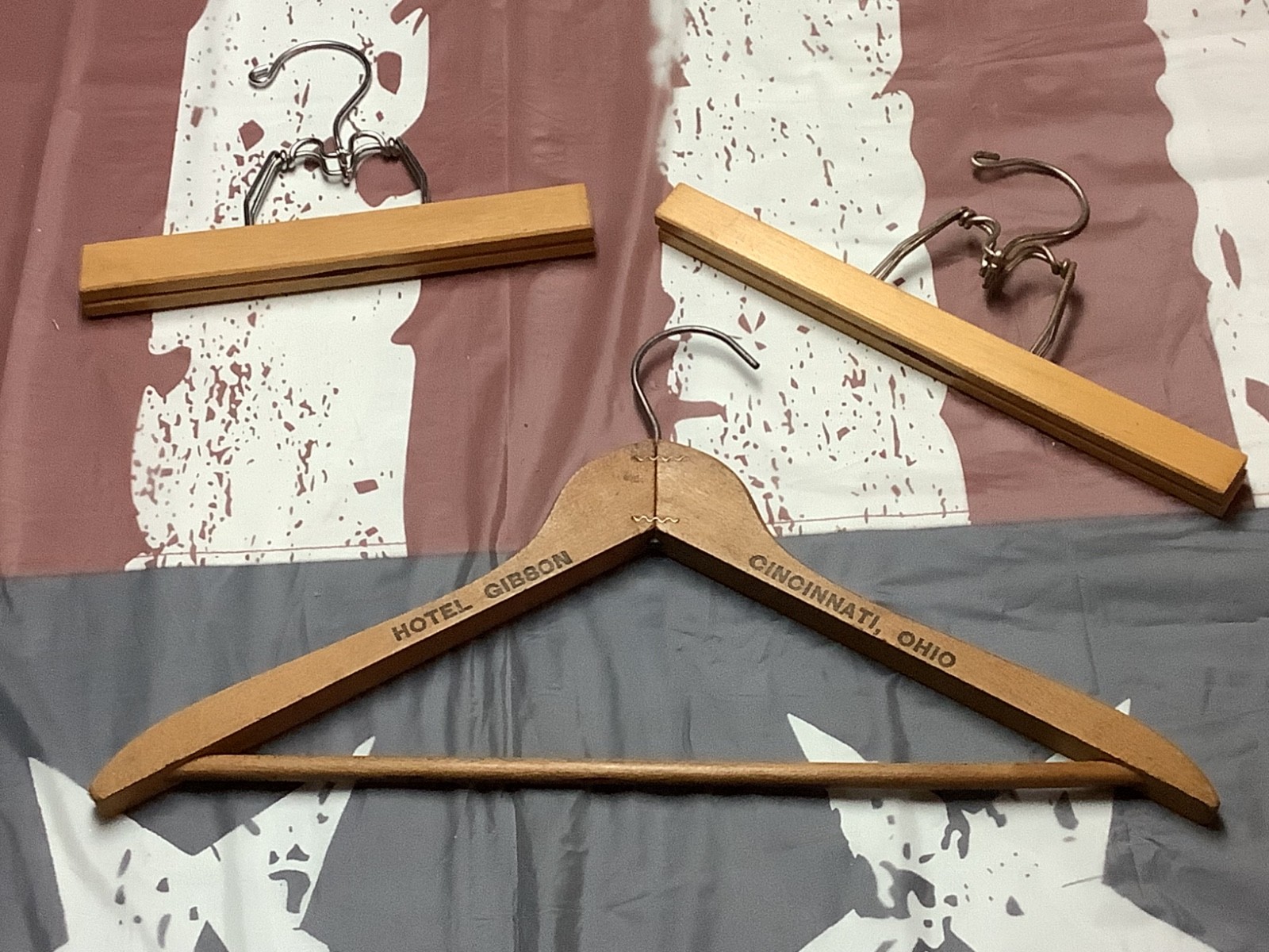 как выглядит Lot of 24 Vintage Wooden Clothes Hangers, Some Advertising, Hotel Gibson фото