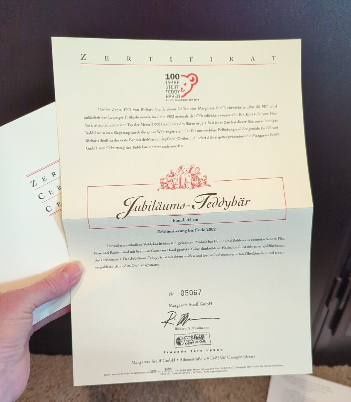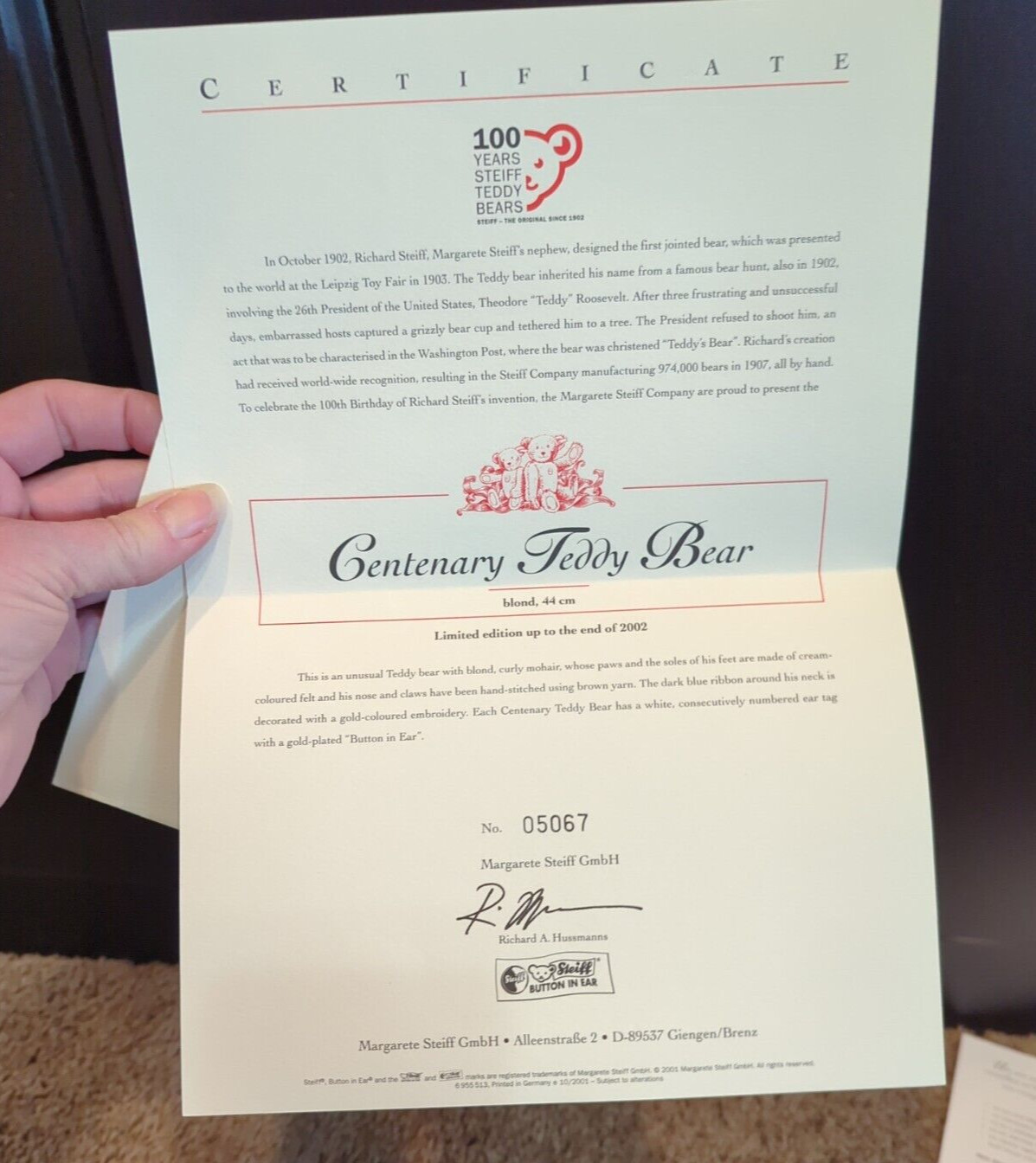 • Steiff Centenary Jubilee Teddy Bear 2002 EAN 670985