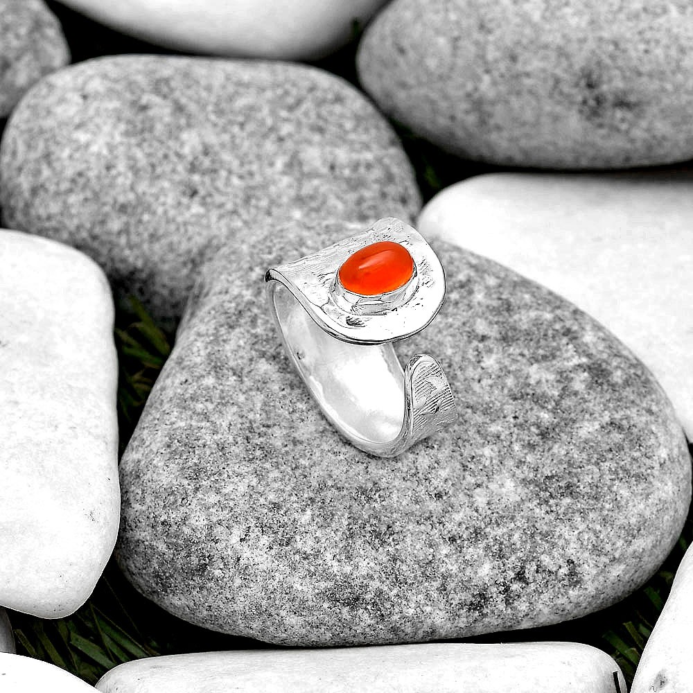 Adjustable - Natural Carnelian 925 Sterling Silver Ring s.7 Jewelry R-1319