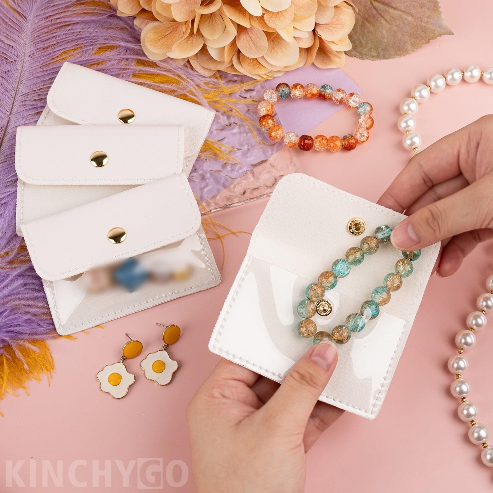 как выглядит 8 Pack Mini Clear Jewelry Pouch Leather Storage Bag for Earrings Necklaces Ring фото