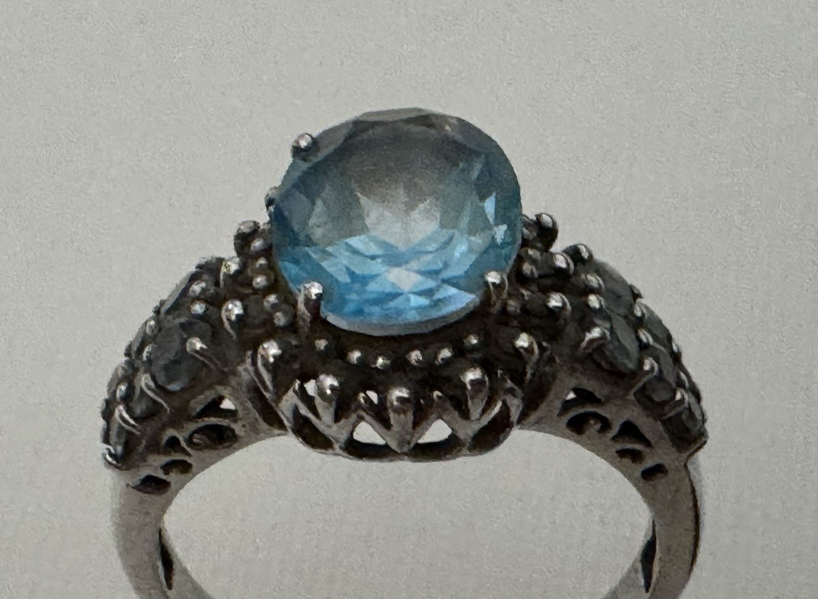 как выглядит Pre-owned Unbranded Vintage Light Blue Topaz Gem 925 Sterling Silver Size 8 Ring фото