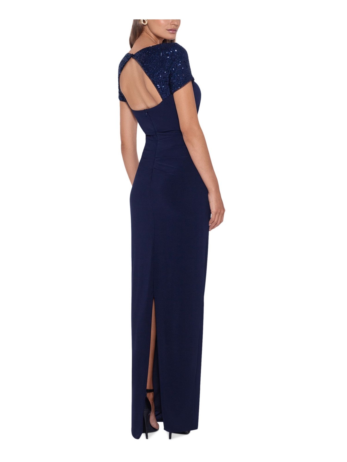 BETSY ADAM Womens Navy Short Sleeve Full-Length Formal Gown Dress 4
