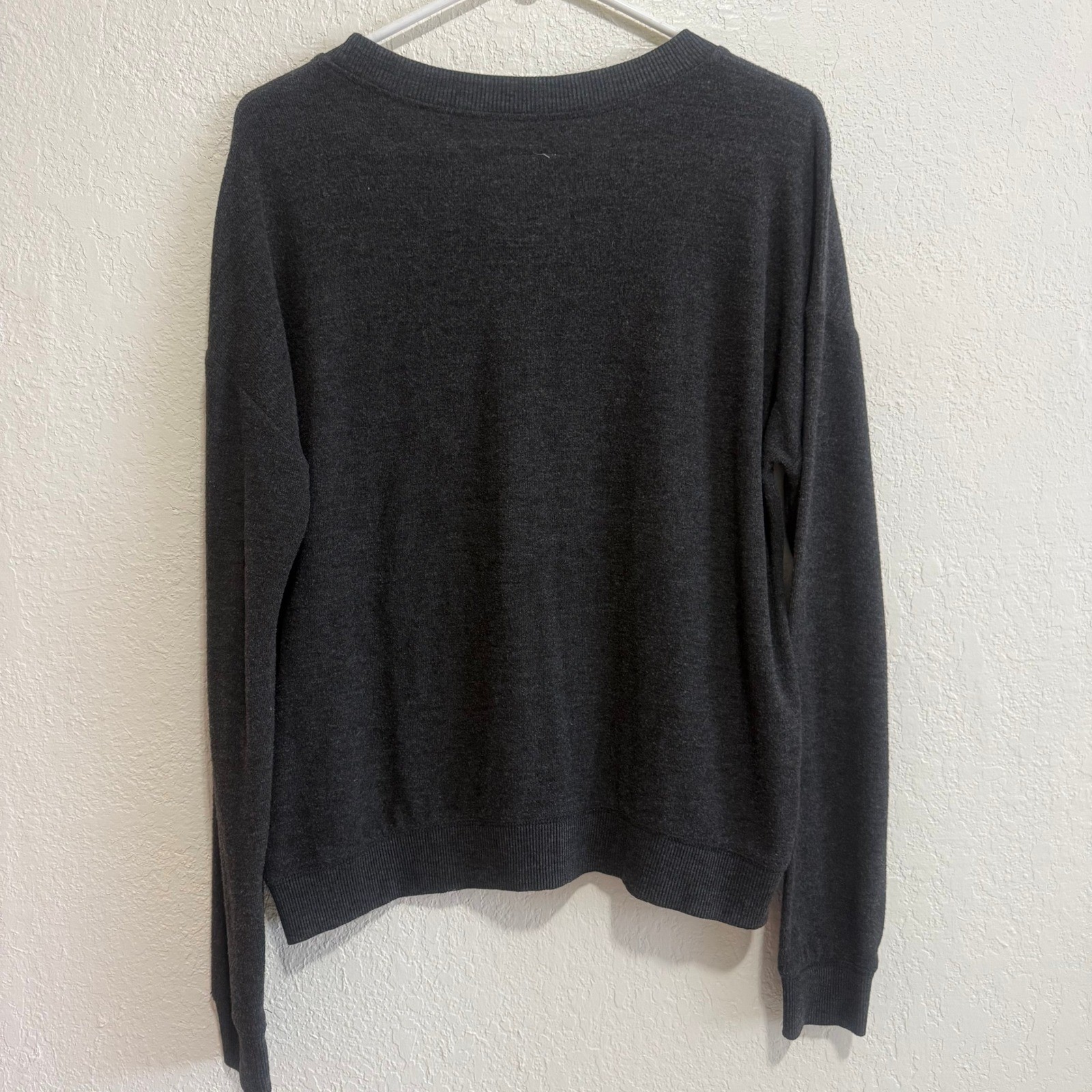 как выглядит Cali 1850 Happy Graphic Sweatshirt Charcoal Gray Long Sleeve Pullover Womens M фото