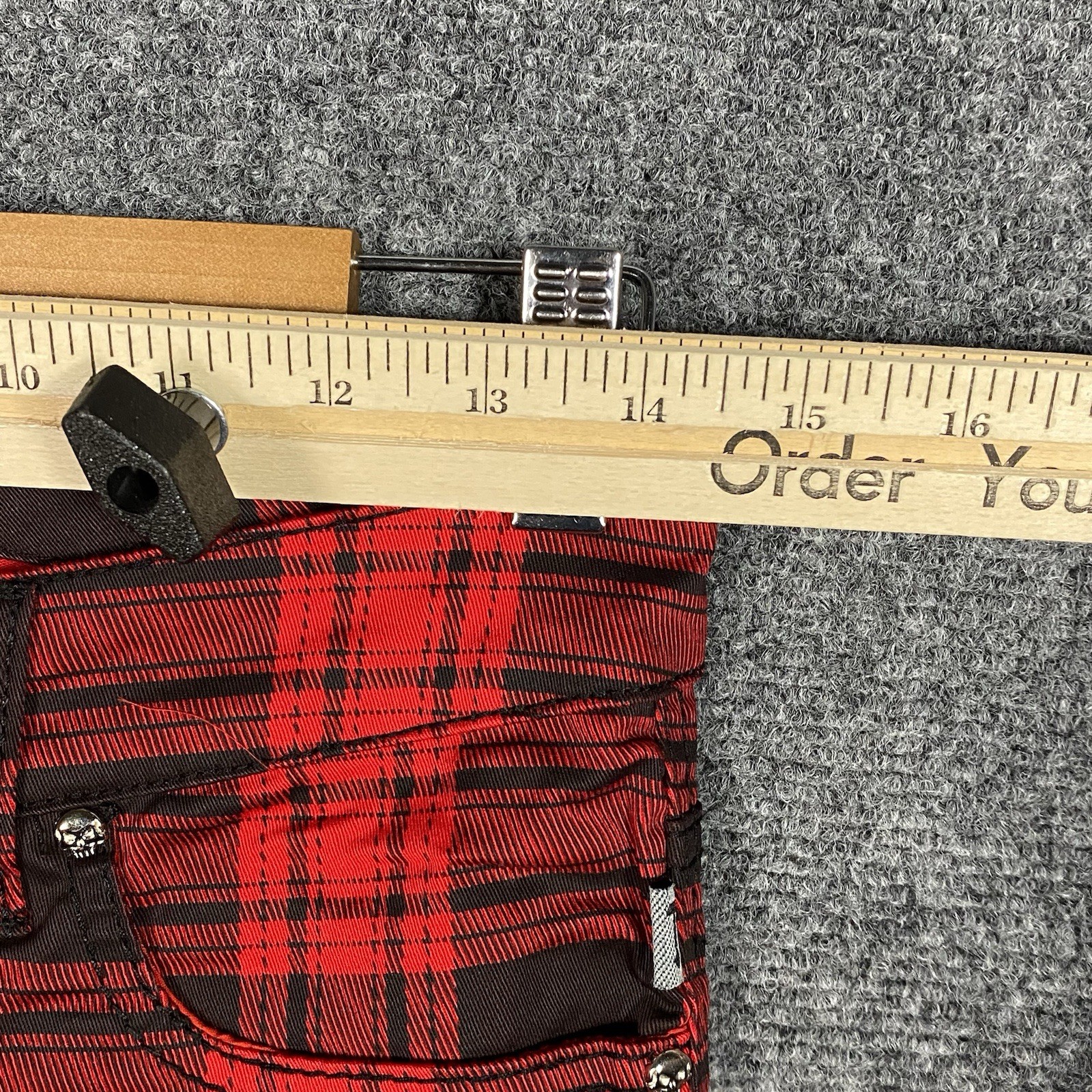 как выглядит Tripp NYC Womens Plaid Pants Size 3 29x32 inseam Red Black Punk Stretch Cotton фото