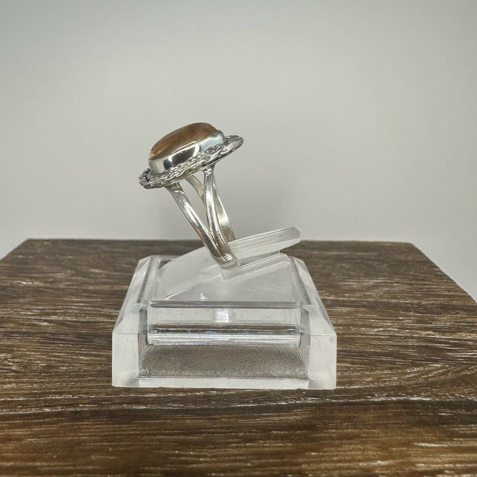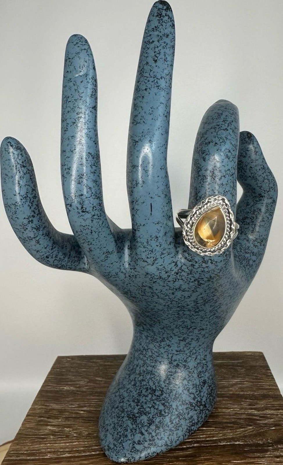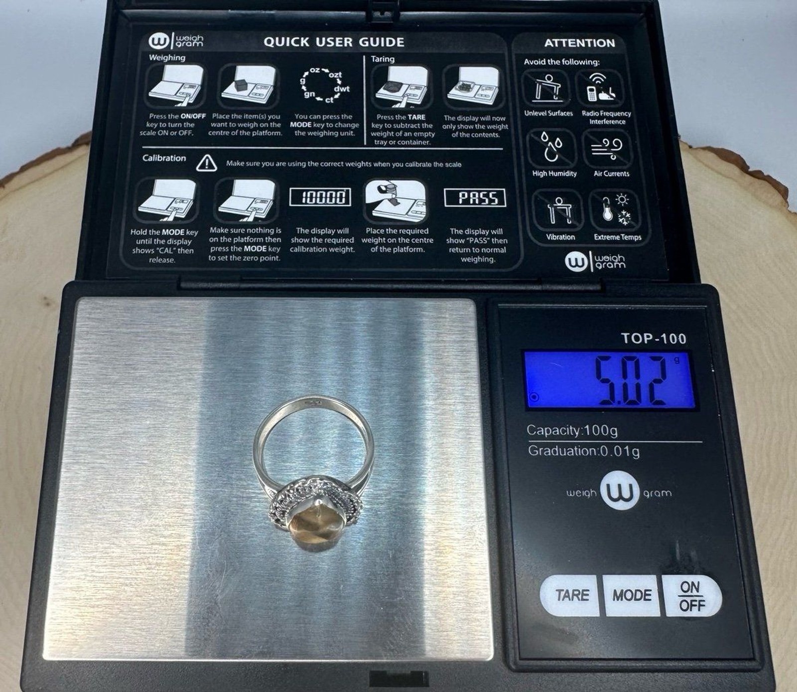 как выглядит Handmade Sterling Silver Golden Rutilated Quartz Rope Edged Ring Sz 8.5 фото
