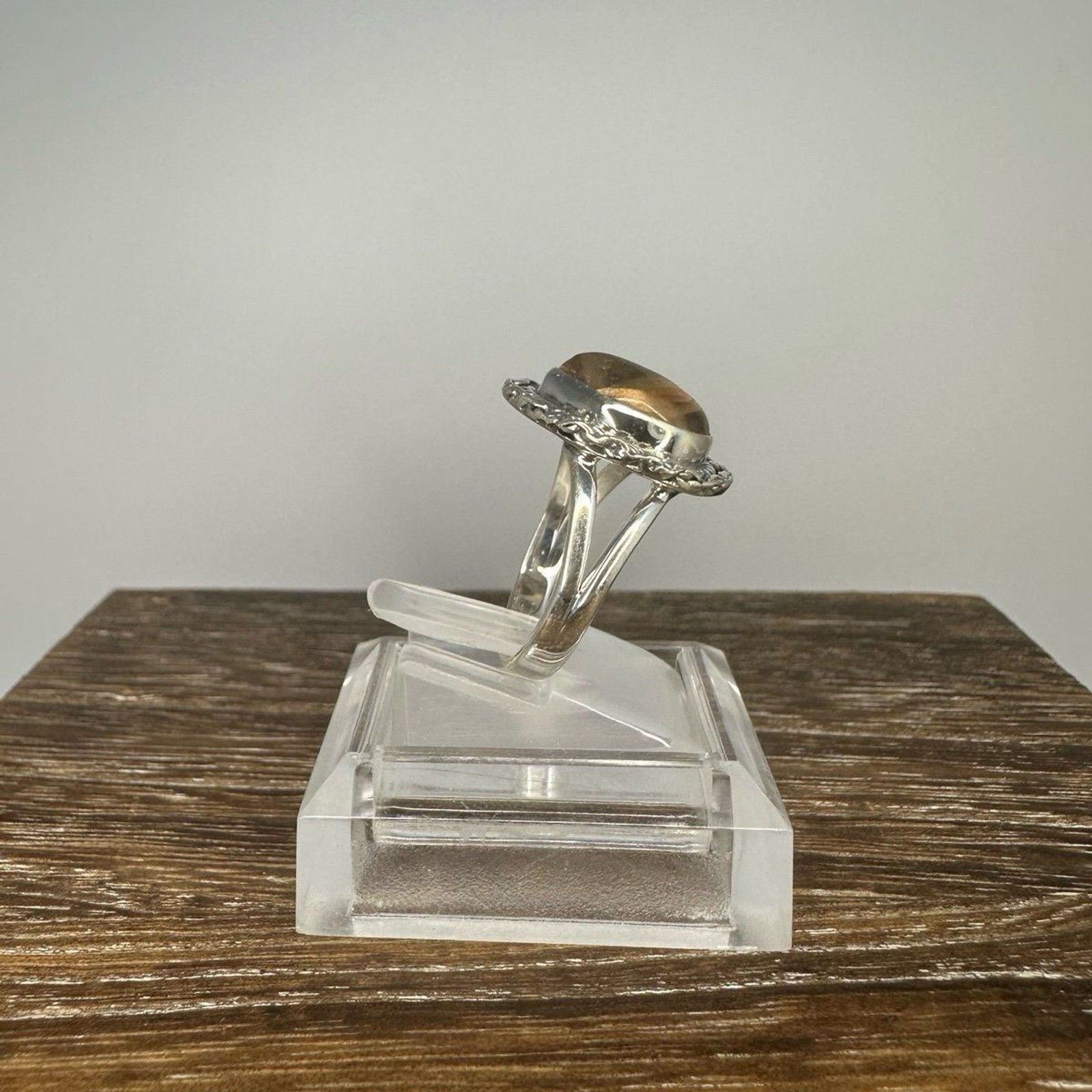 Handmade Sterling Silver Golden Rutilated Quartz Rope Edged Ring Sz 8.5