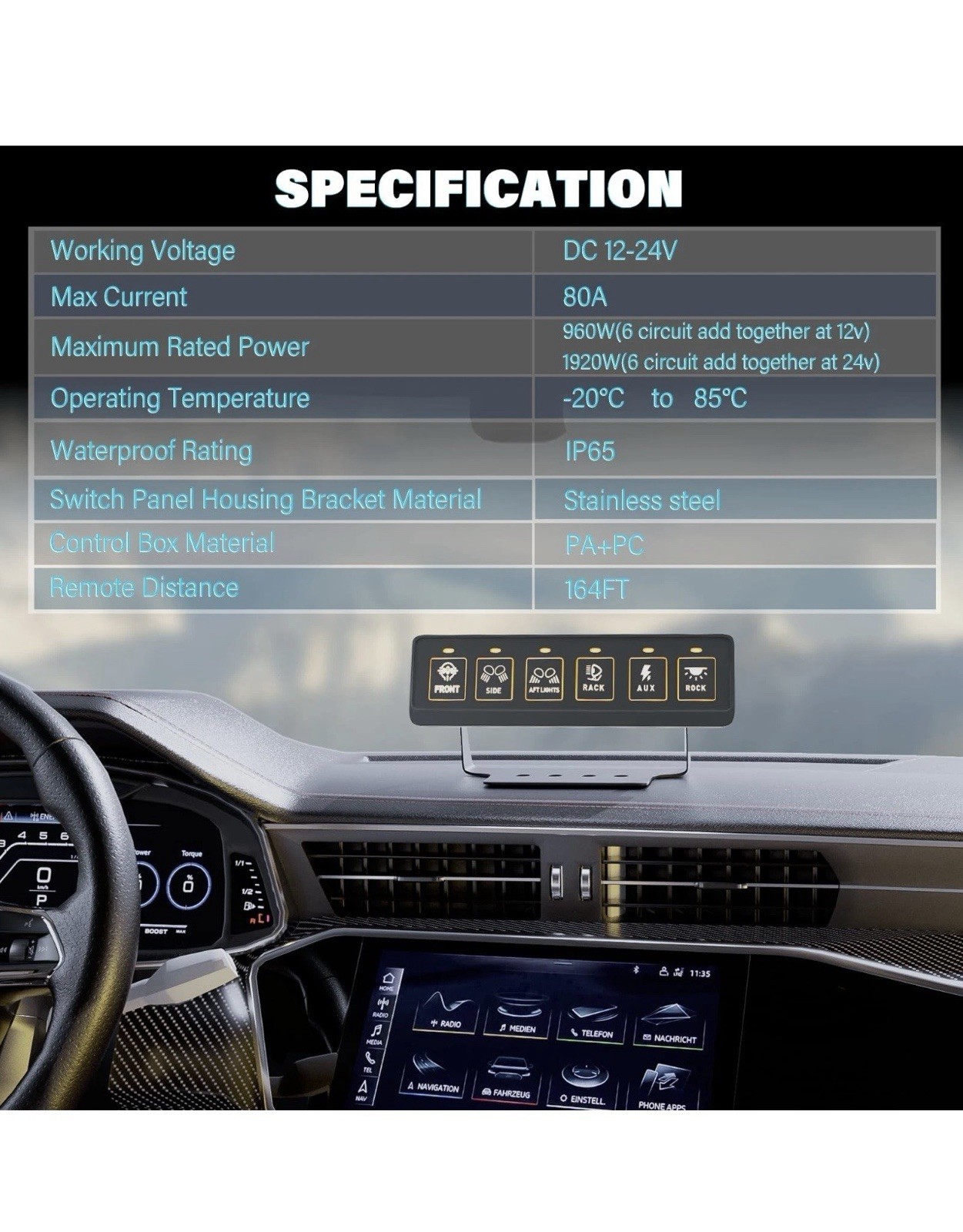 6 Gang Wireless Switch Panel,Multifunction Remote Switch Panel for Offroad Li...