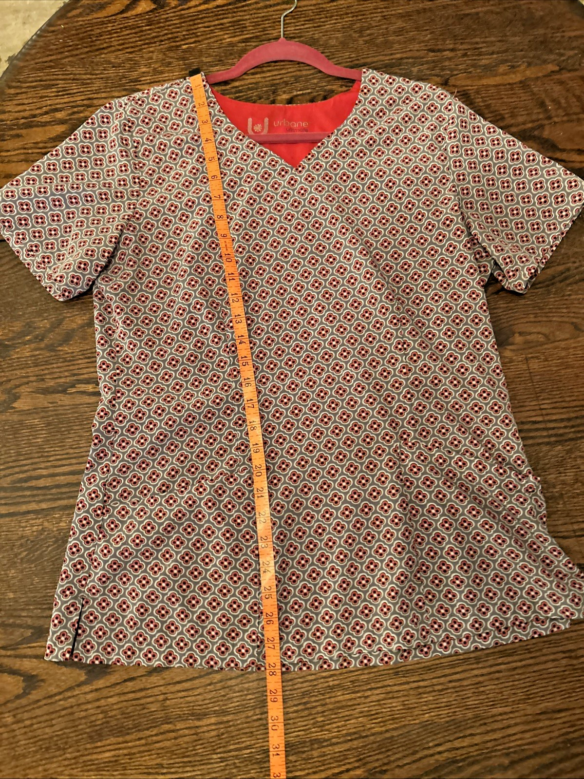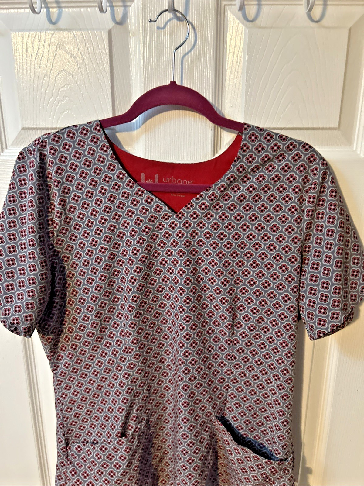 как выглядит Urbane Ultimate Womens Scrub Top With Pockets Gray Multi. Geometric Size M фото