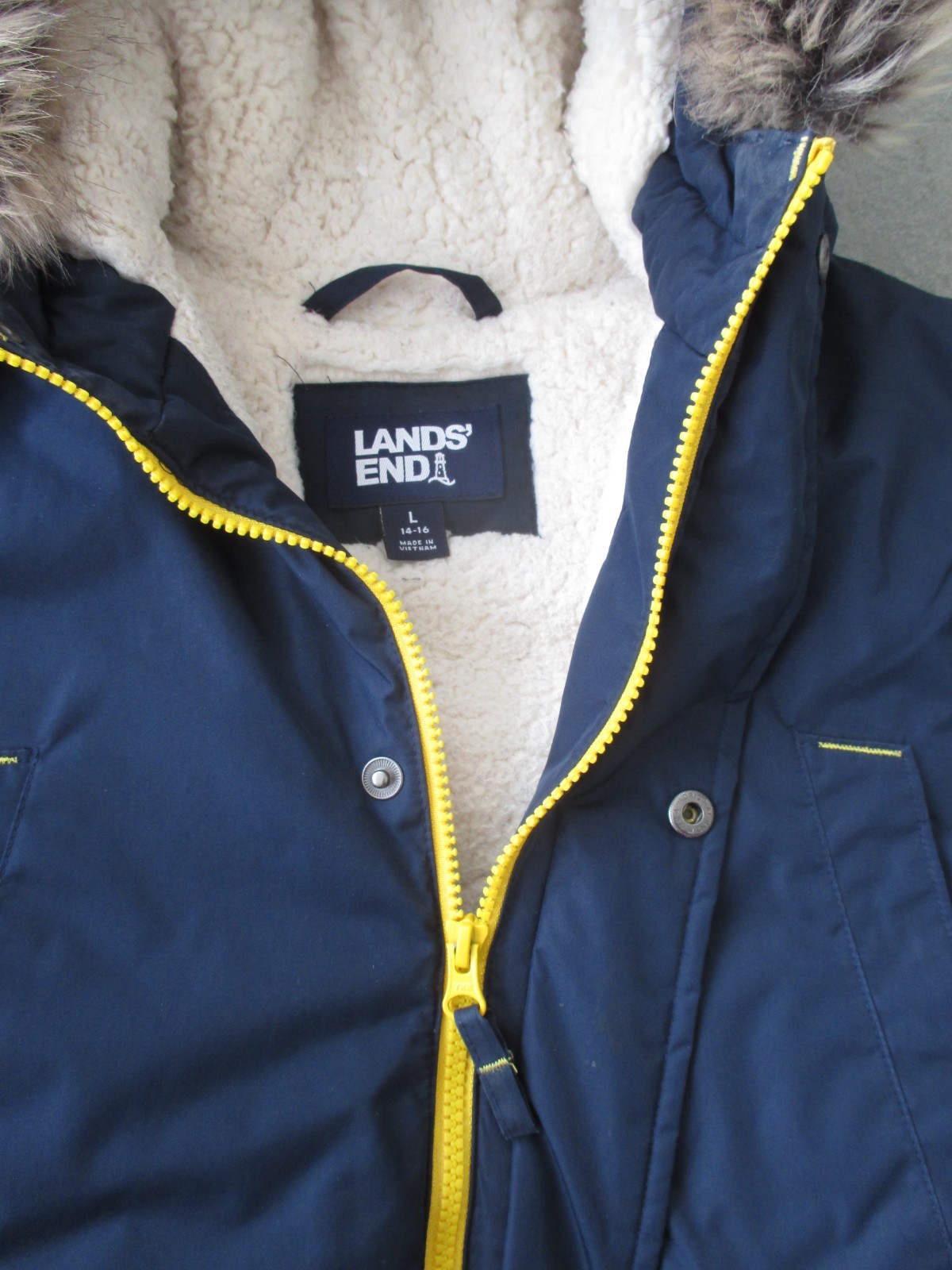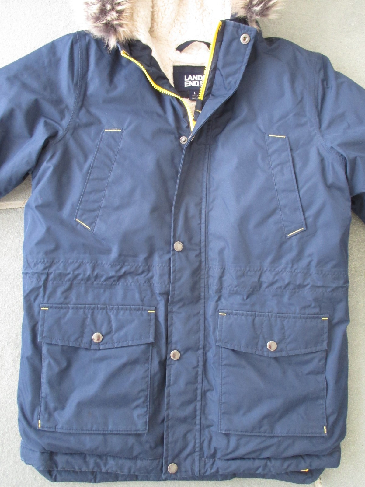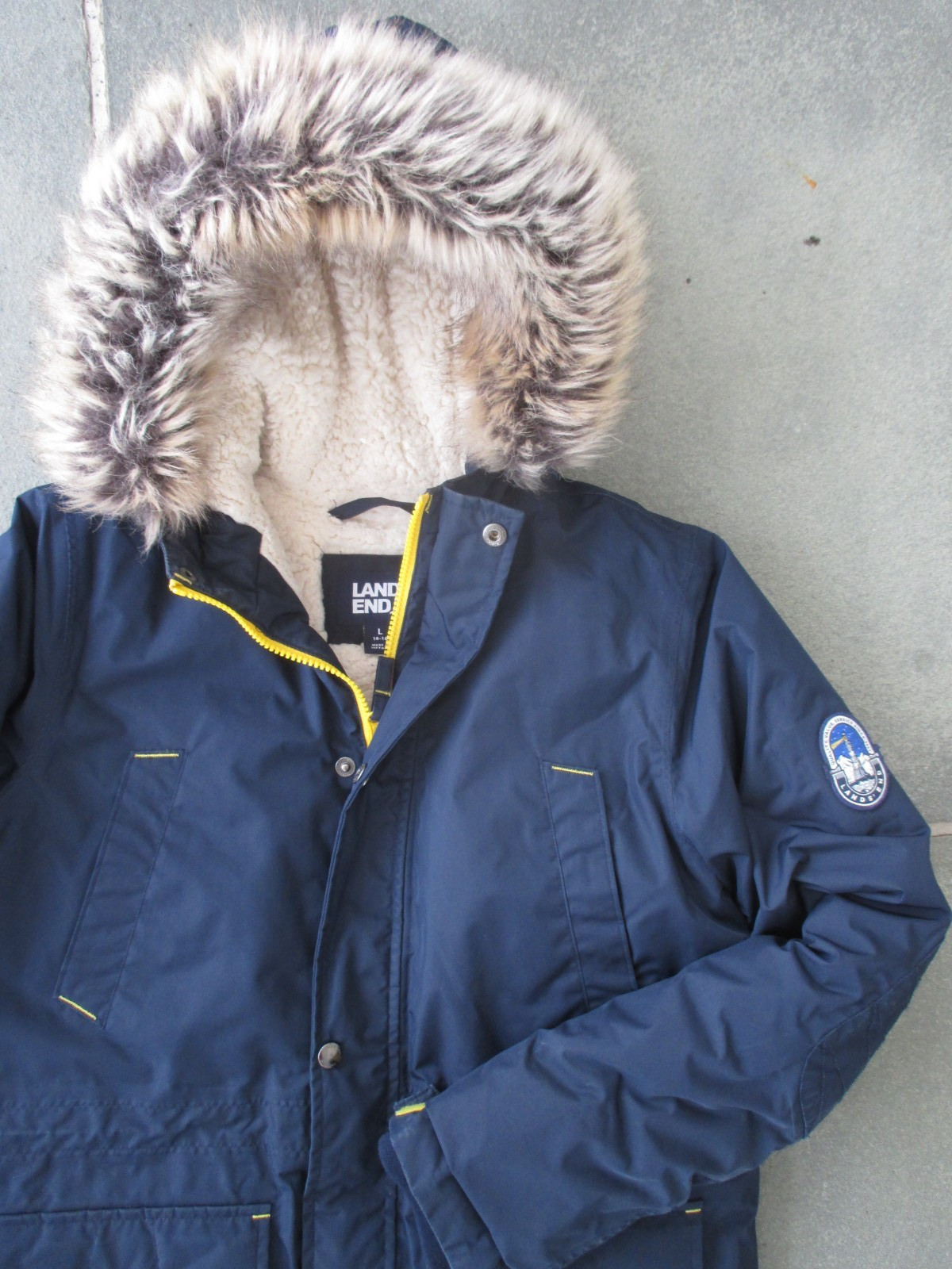 как выглядит LANDS END Kids EXPEDITION Down PARKA HOOD Coat JACKET Winter Ski FLEECE L 14-16 фото