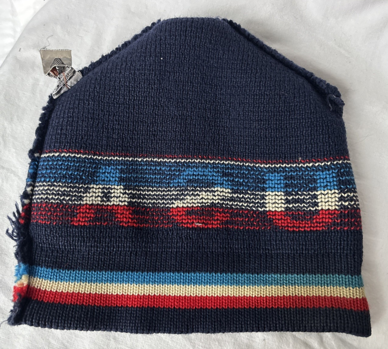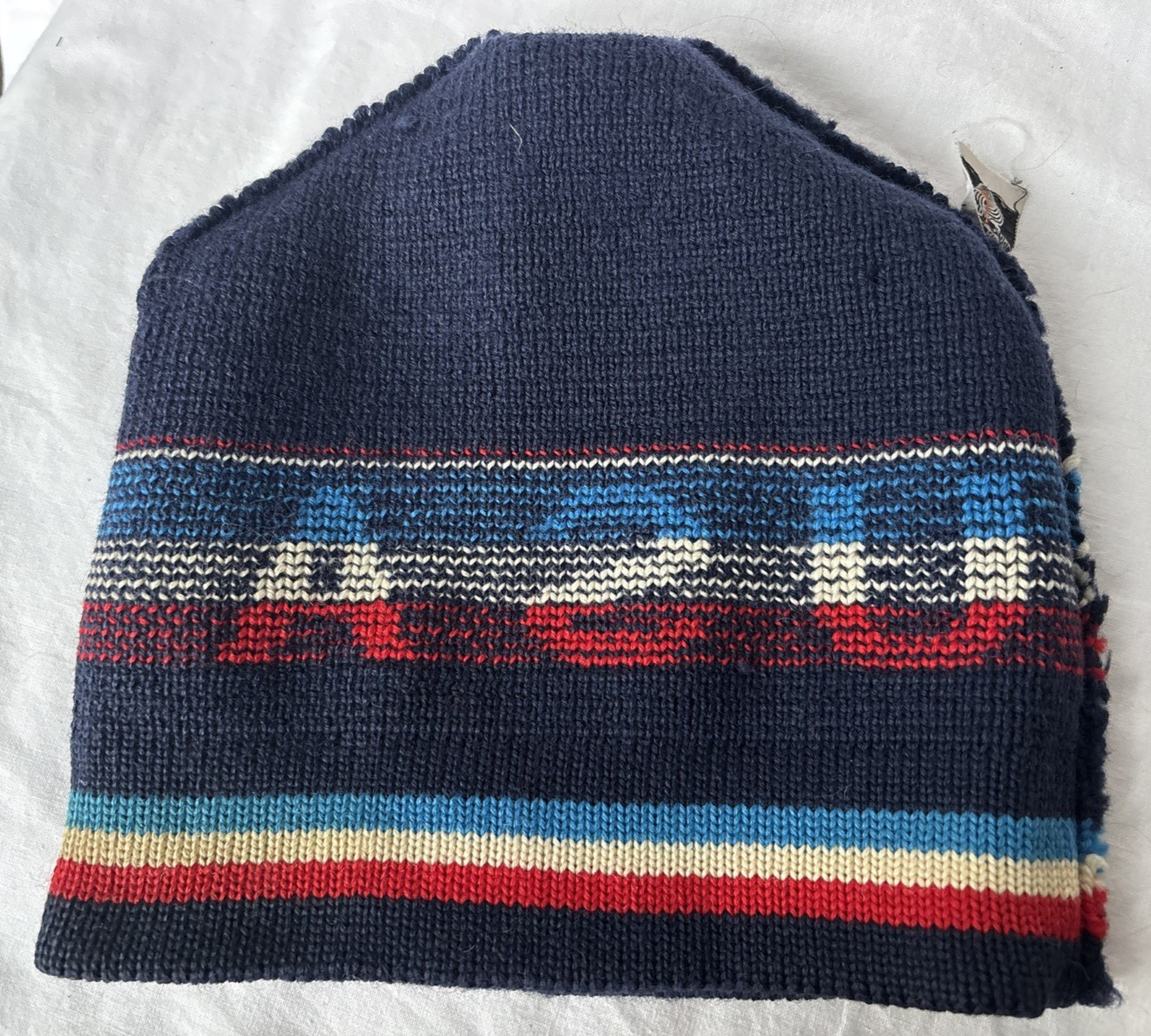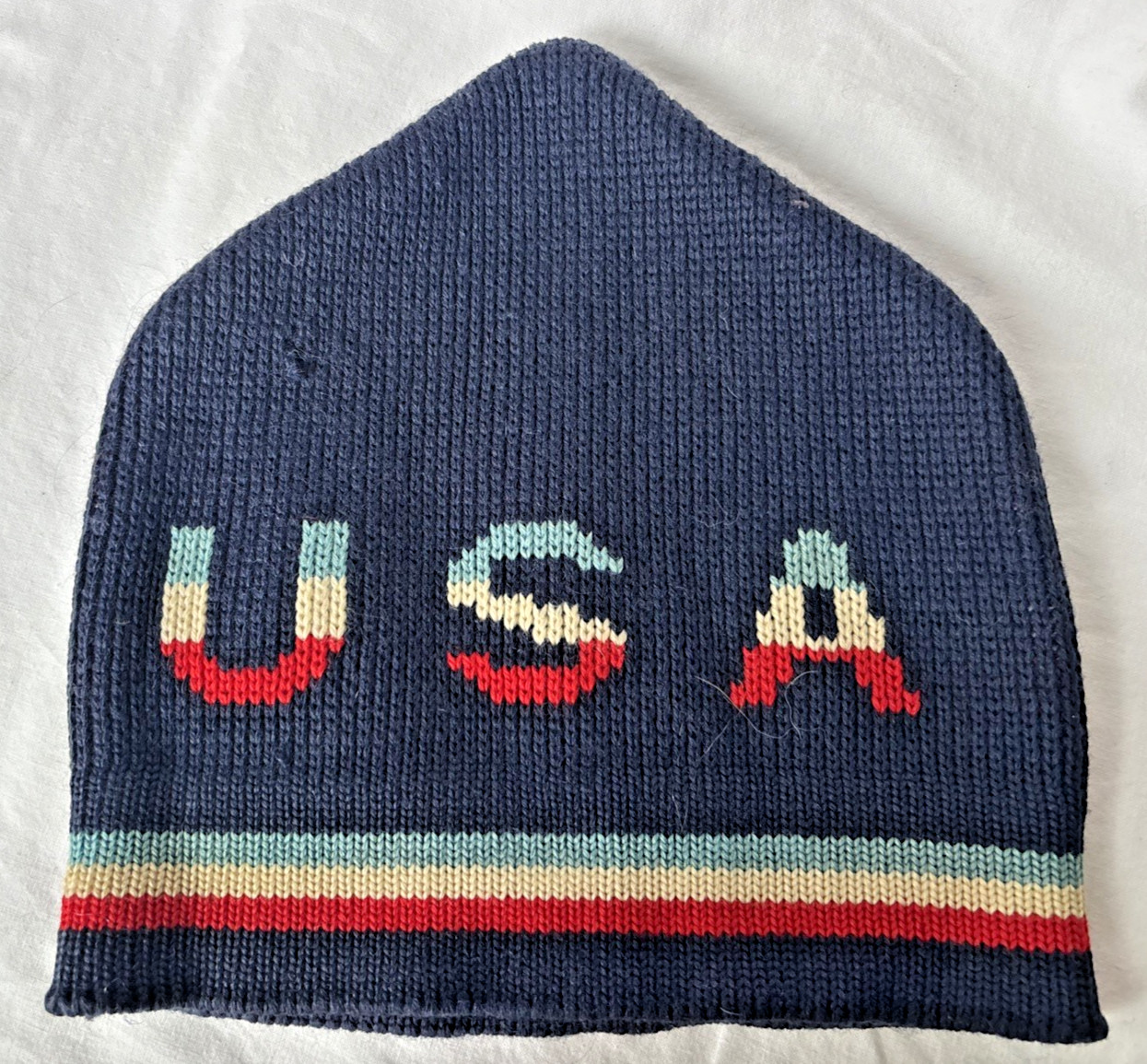 Vintage Wigwam USA Wool Ski Hat Patriotic Navy Blue Cap Beanie Made in USA READ