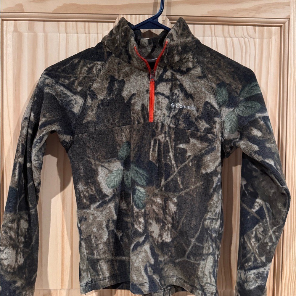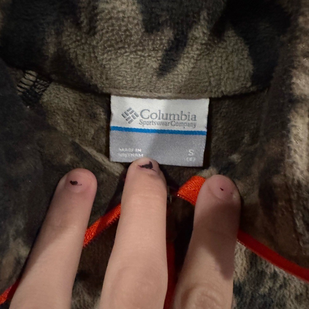 Columbia Kids Camo Fleece Quarter Zip Pullover Brown Green Orange Small 8