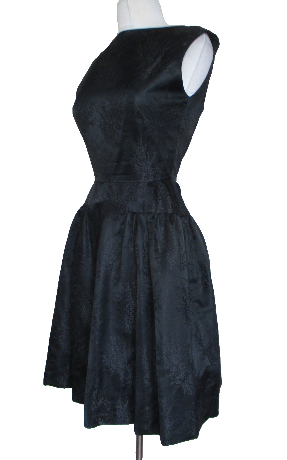 как выглядит Vintage 50s Dress Black Brocade Fit Flare Floral XS Sleeveless Full Skirt фото