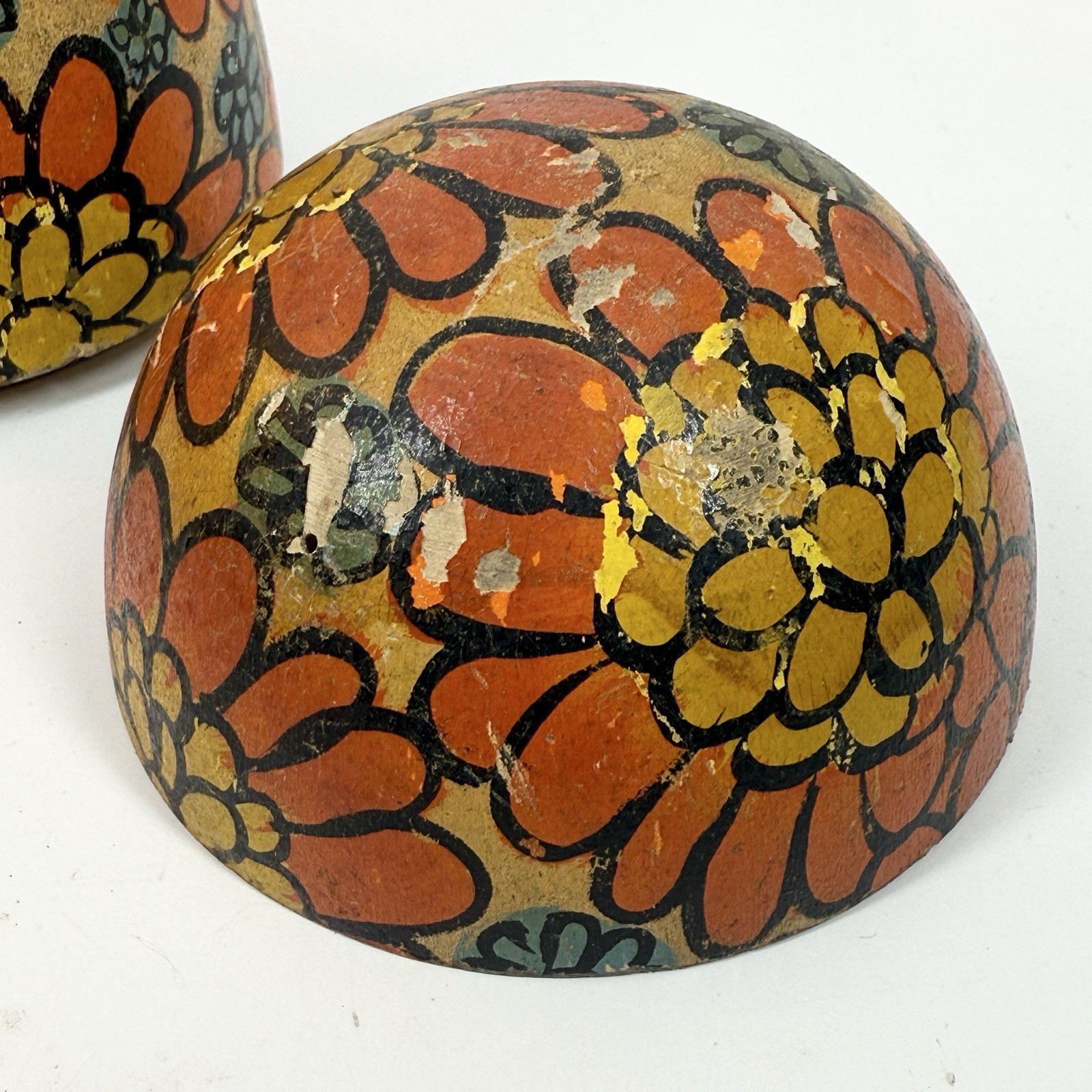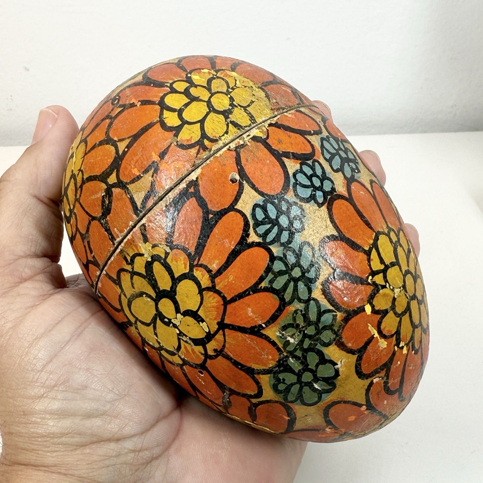 • GERMAN Hand Painted Wooden EASTER EGG Shaped 4.5in CANDY Container 1940s/60s