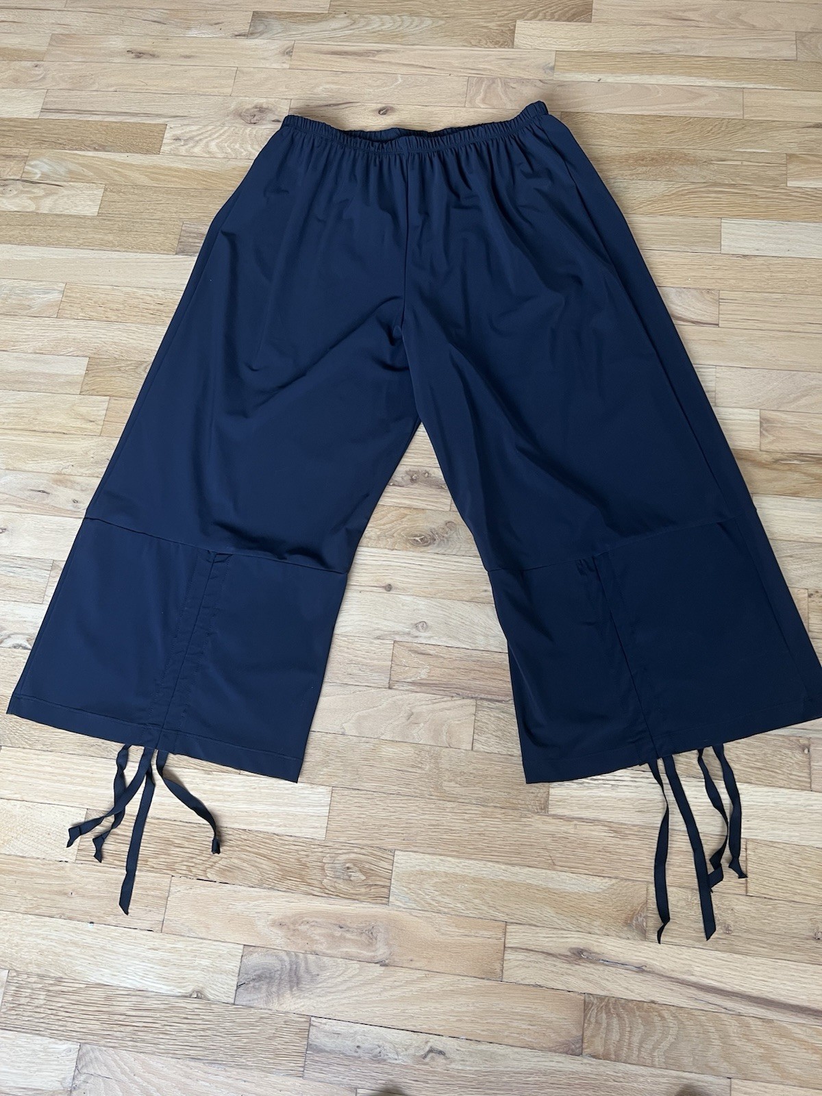 как выглядит Bryn Walker Ruched Cropped Wide Leg Lagenlook Pull On Pants Women L Black фото