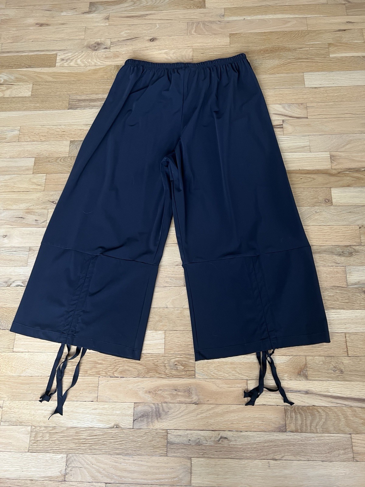 Bryn Walker Ruched Cropped Wide Leg Lagenlook Pull On Pants Women L Black
