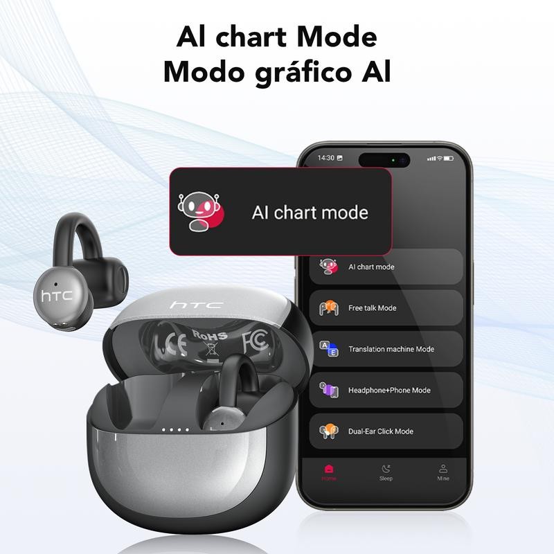 1 HTC NE15 Wireless Clip-on Earbuds Bluetooth Headset TWS AI Translator Earphone