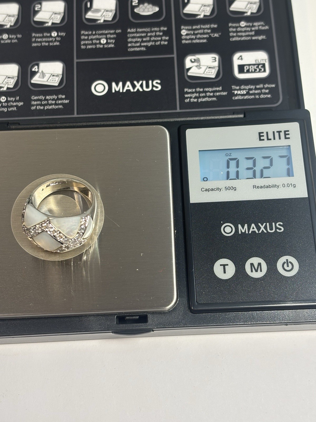 как выглядит 925 Sterling Silver Mother Of Pearl Ring W Zircons Look At Value Invest Size 8 фото