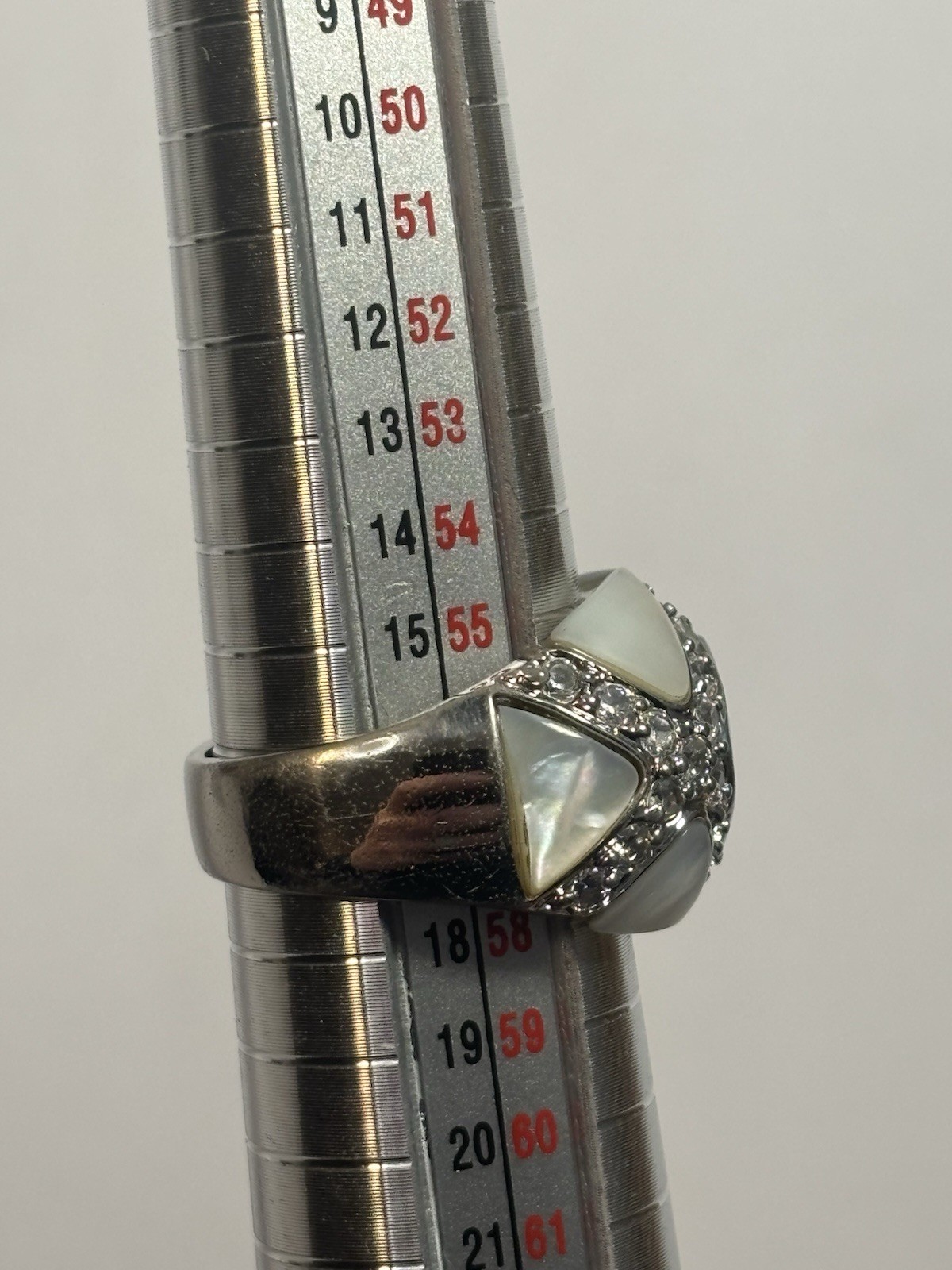 925 Sterling Silver Mother Of Pearl Ring W Zircons Look At Value Invest Size 8