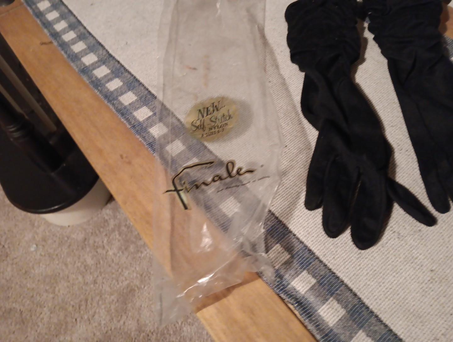 как выглядит VINTAGE FINALE WOMENS BLACK GLOVES SELF STRETCH NYLON SIZES 6-7 фото