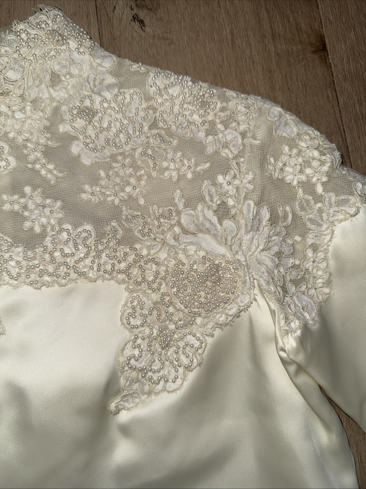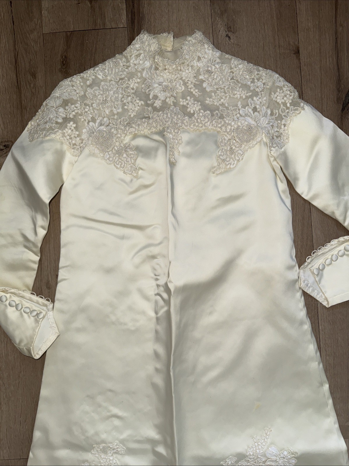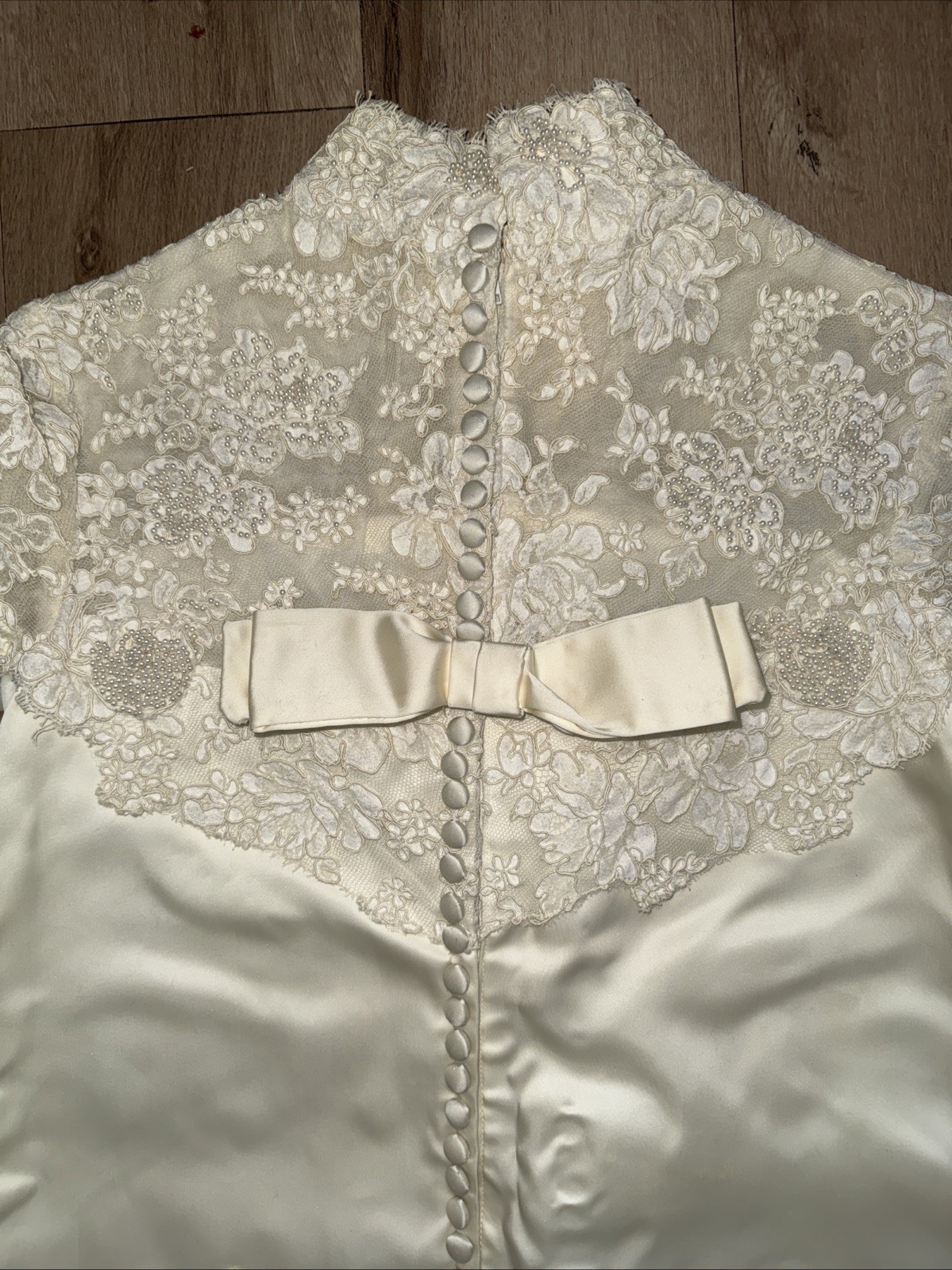 как выглядит Vintage Handmade 1960s Edwardian Lace Pearls Bridal Gown Wedding Dress Size S M фото