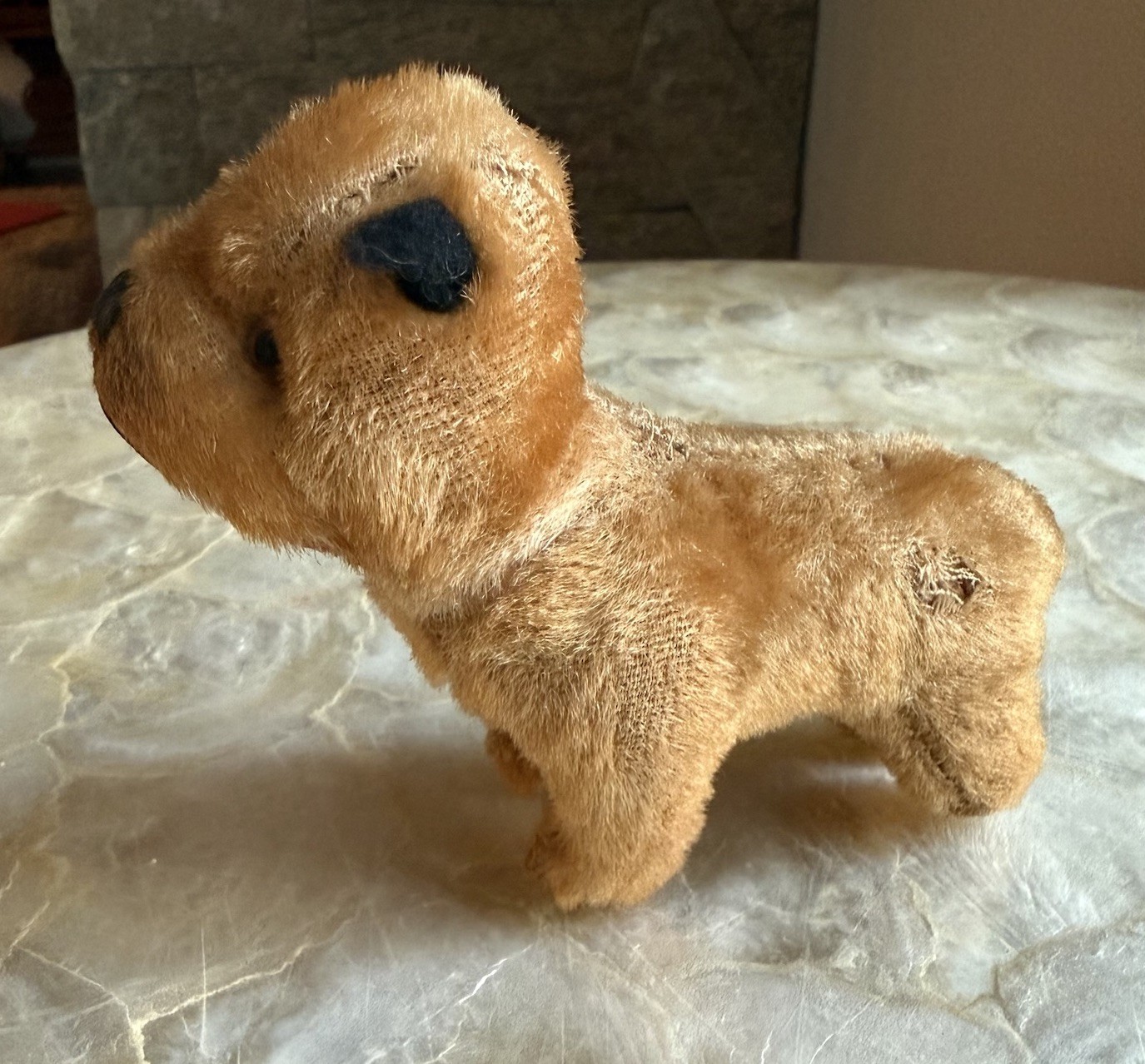 VTG Steiff style Mohair Dog Germany 5 Glass Eyes Mini Plush Puppy Estate Find