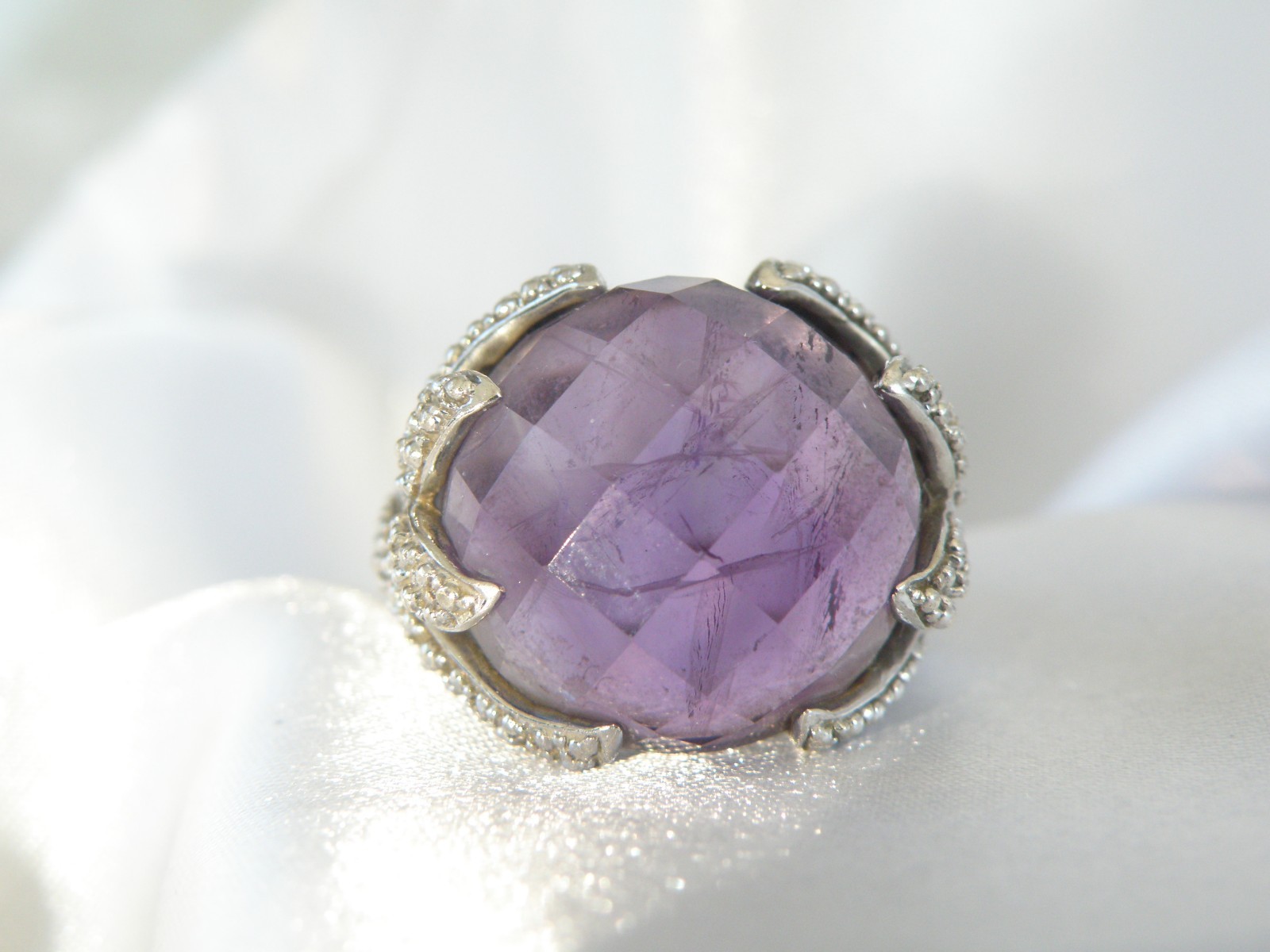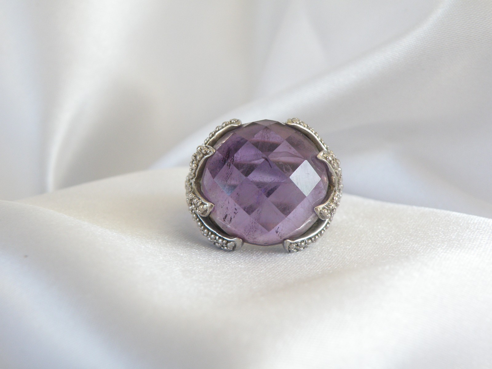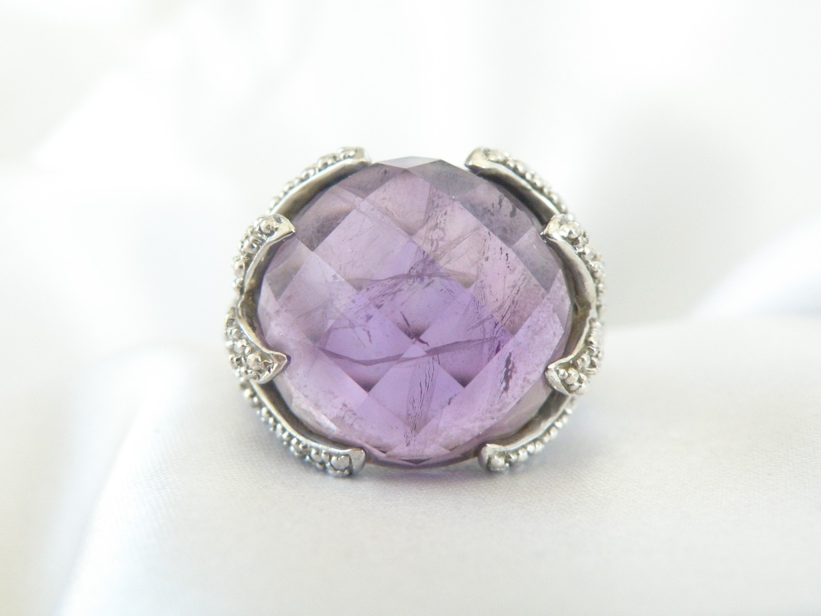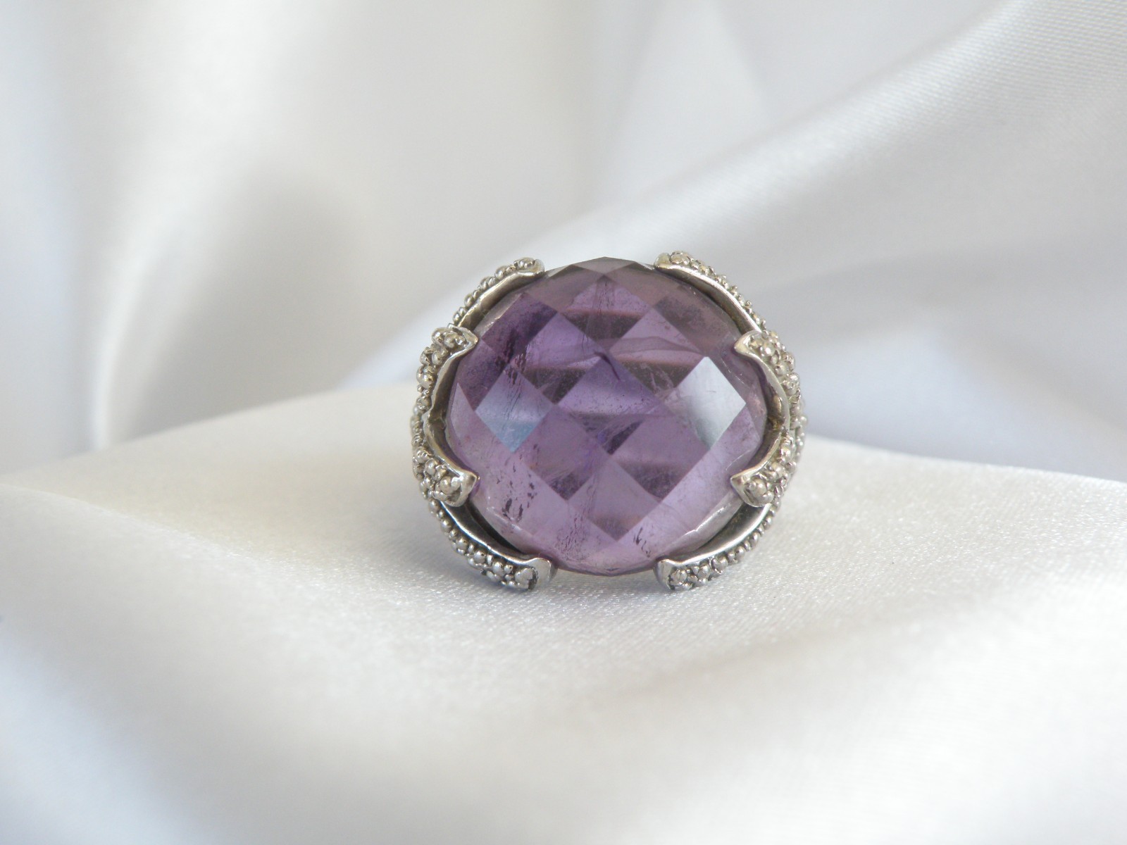 как выглядит Vintage Sterling Silver 925 Natural Amethyst Claw Unique Ring Size 7.5 фото