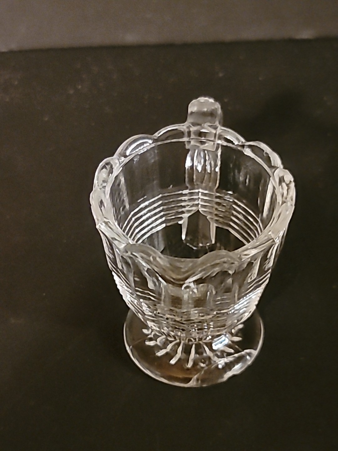 Vtg Dep Gls Era Childs Toy Creamer Clear Footed Handle Scallop Edge Ribbed Band