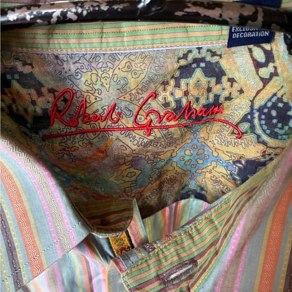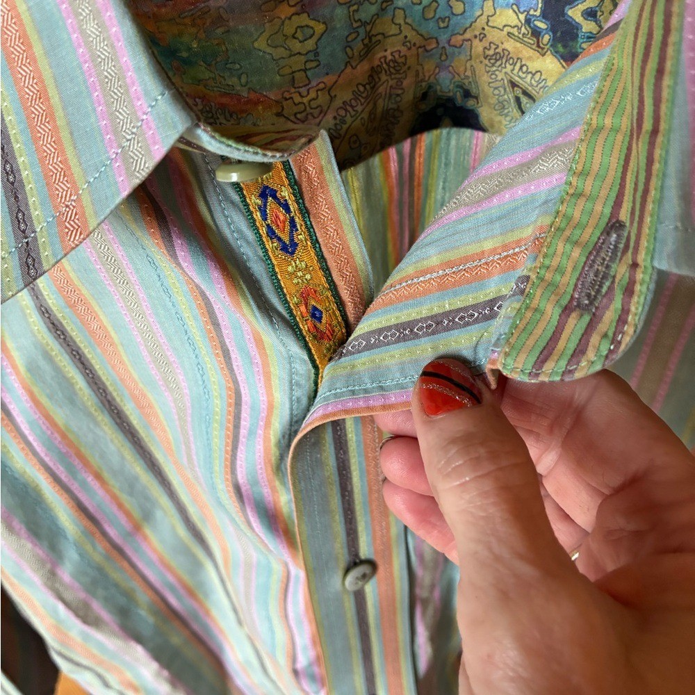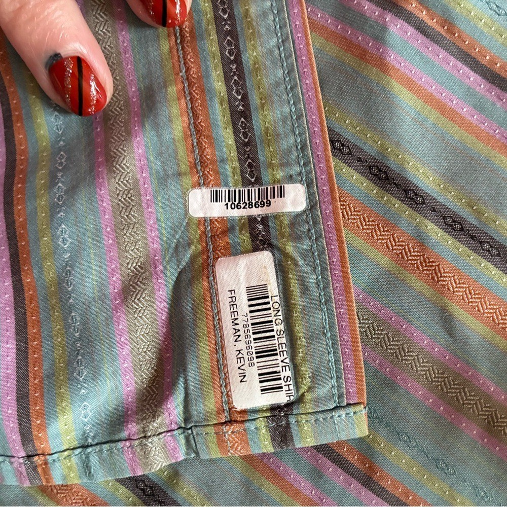 как выглядит Robert Graham Pastel Striped Sz. 2X Shirt with Paisley Accents фото