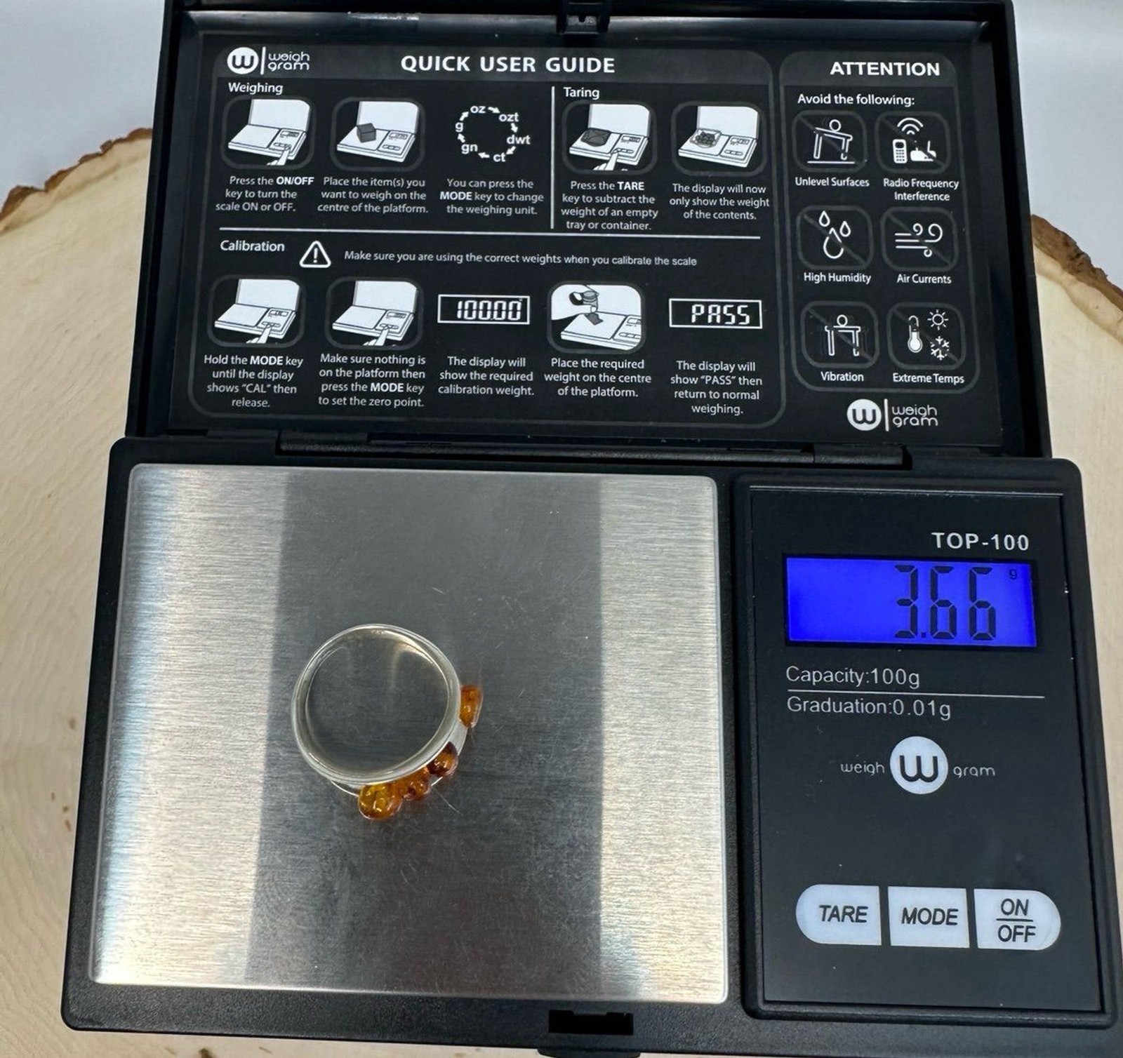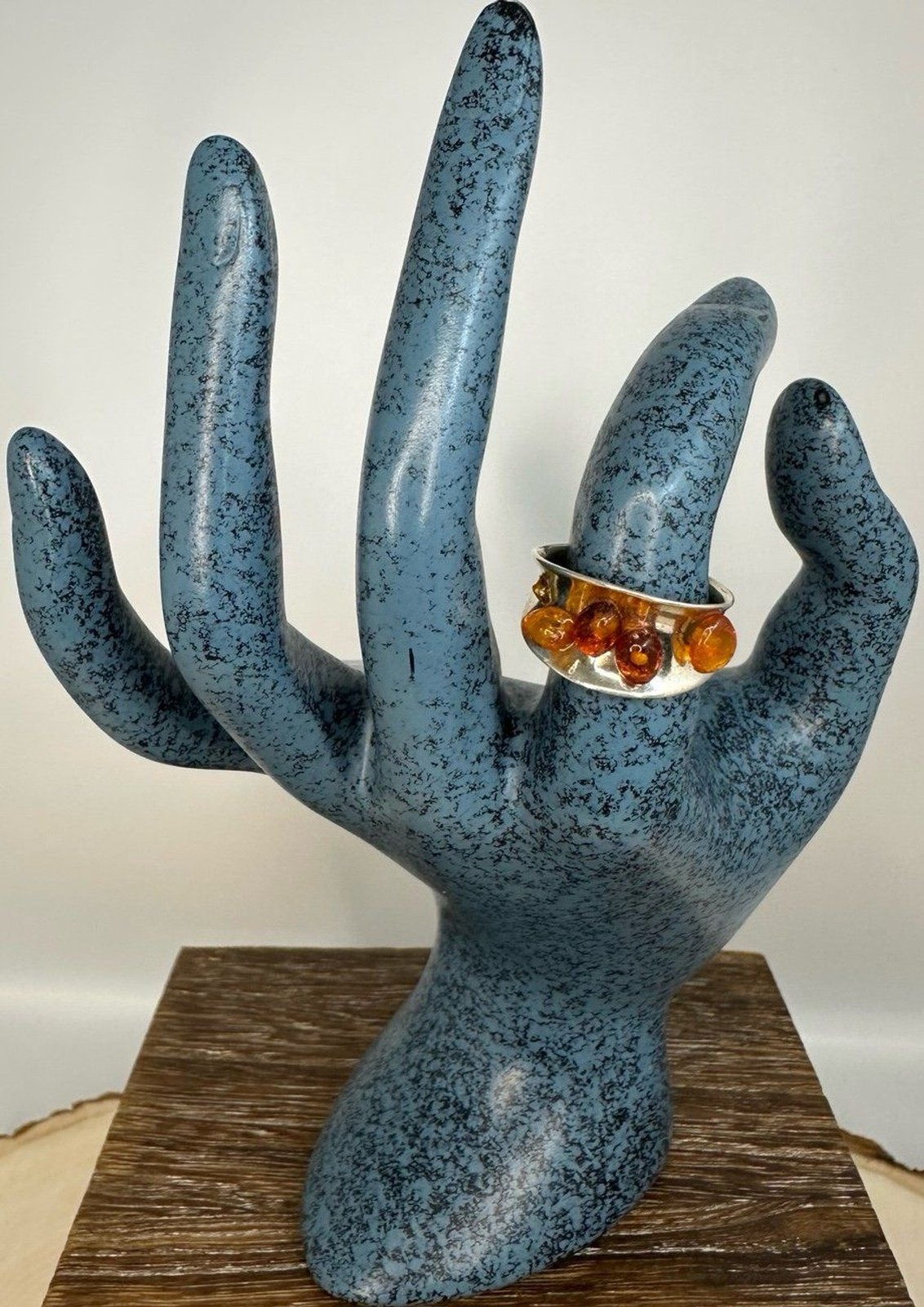 как выглядит Sterling Silver Modernist Multistone Baltic Amber Ring Sz 6 фото