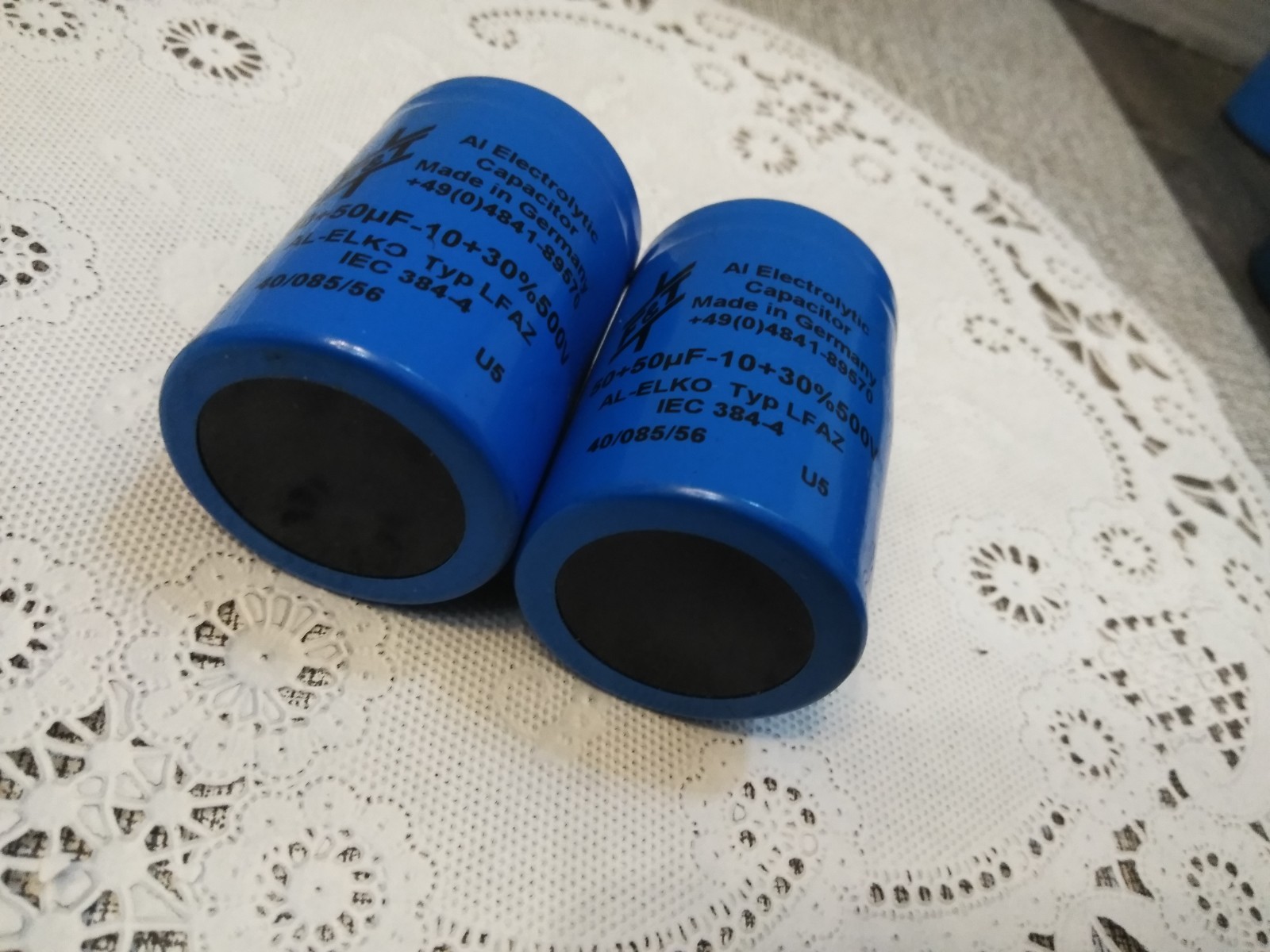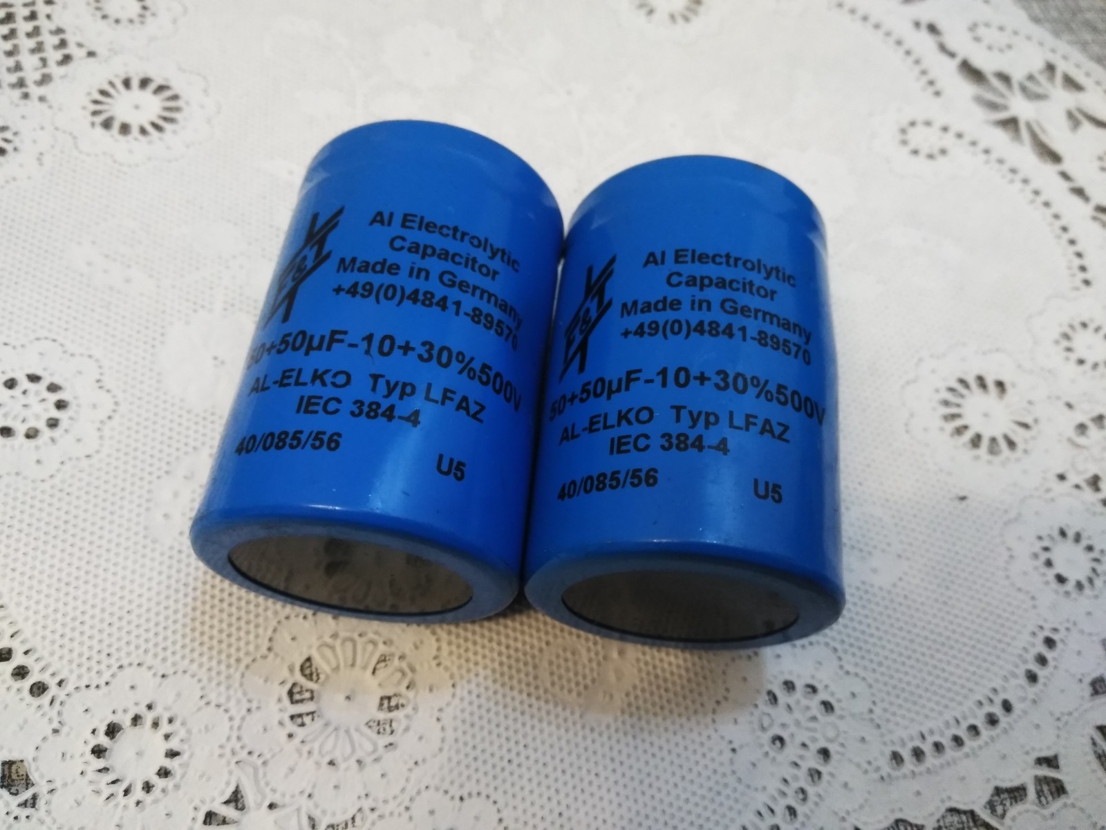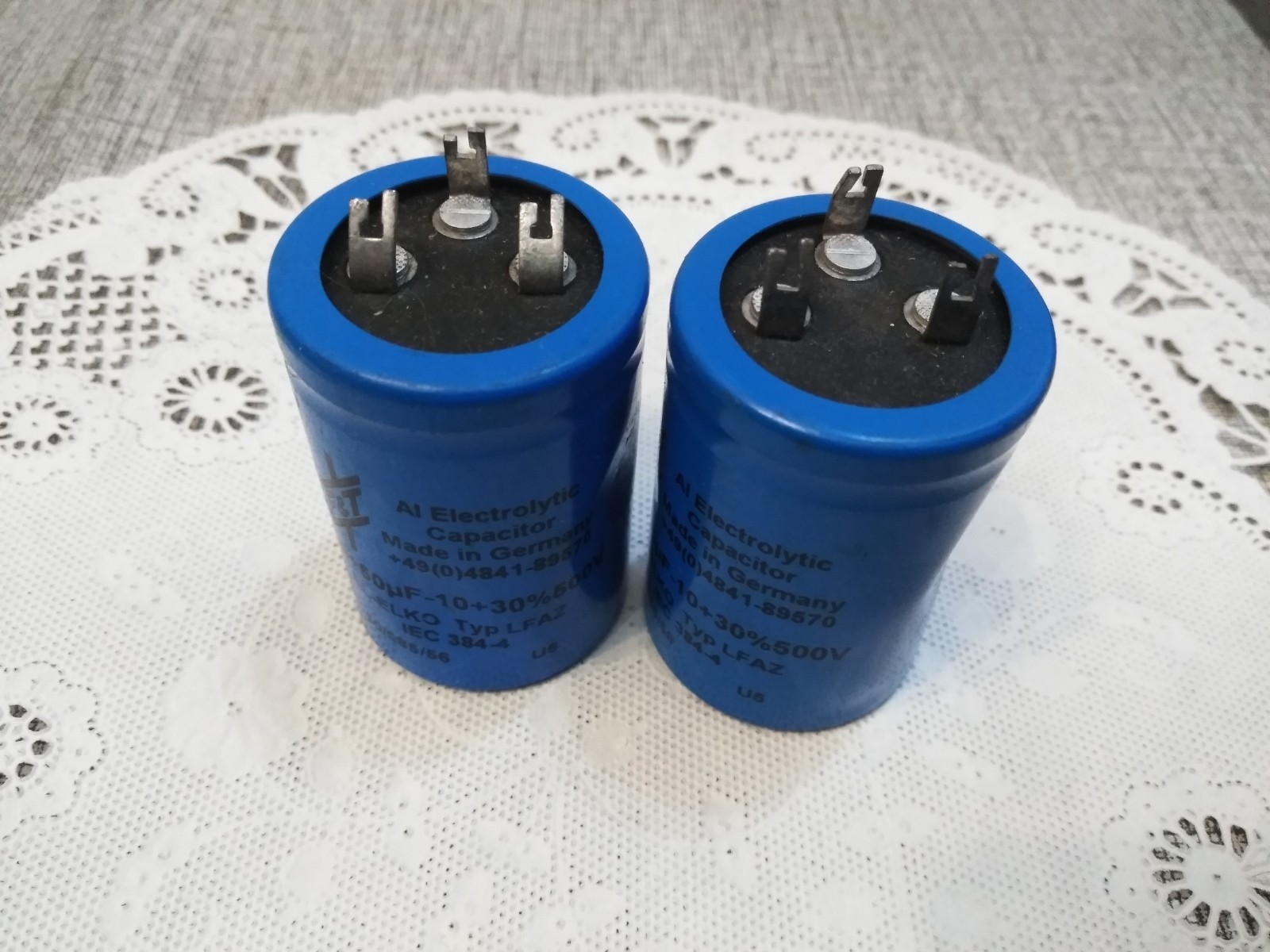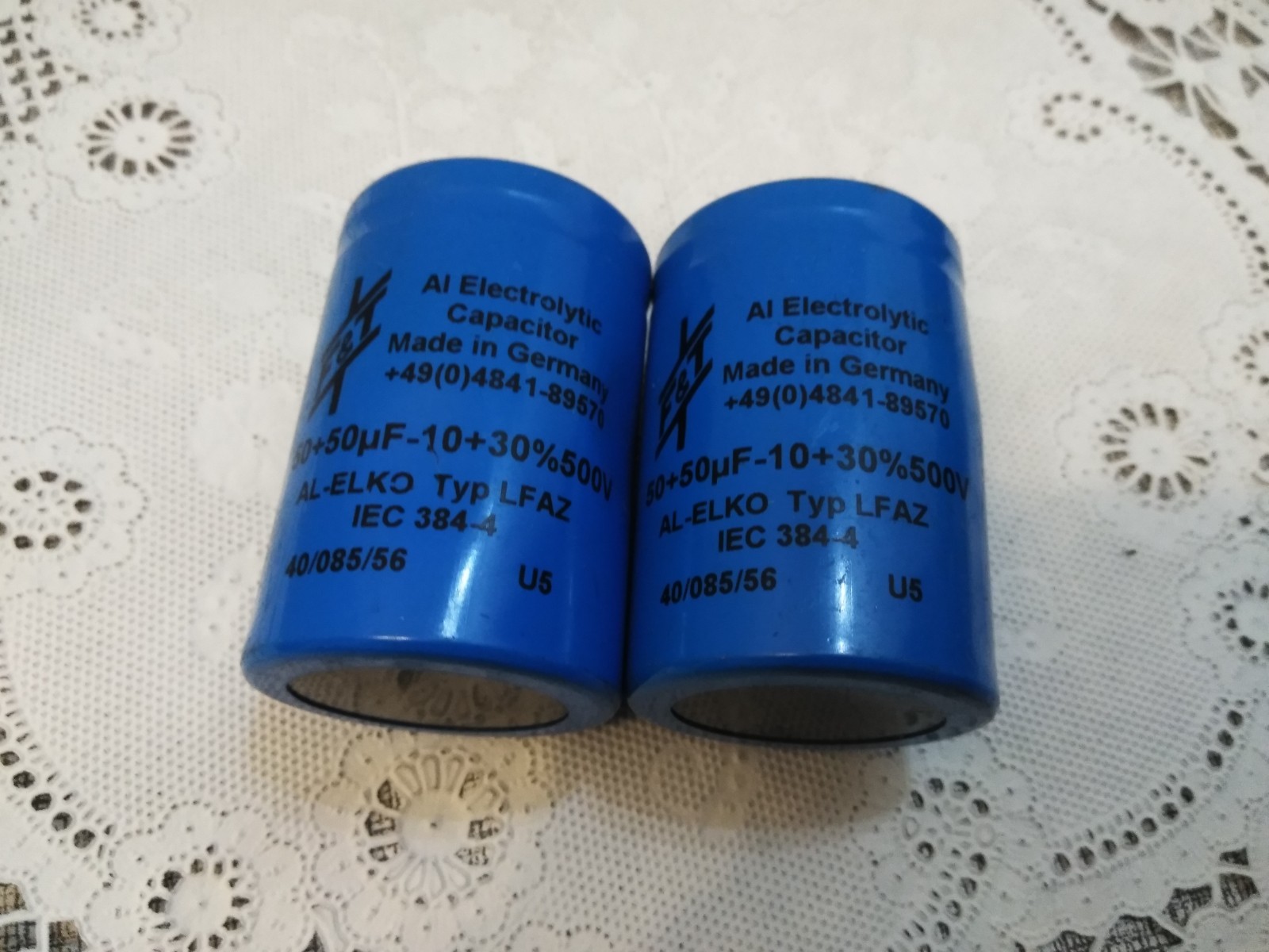 F T Capacitor, 50/50 F-10 30 500V Electrolytic 2PCS MADE IN GERMANY
