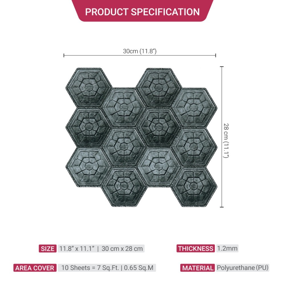 Mosaicowall Grey Hexagon Peel and Stick Backsplash Tiles Home Decor