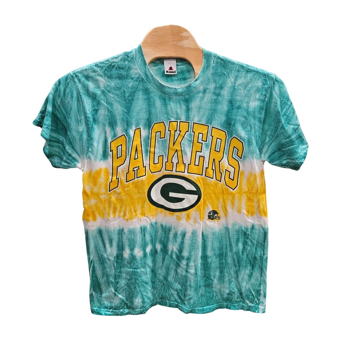 • VTG Riddell Green Bay Packers Tie-Dye T-Shirt Short Sleeve 1998 Adult Large