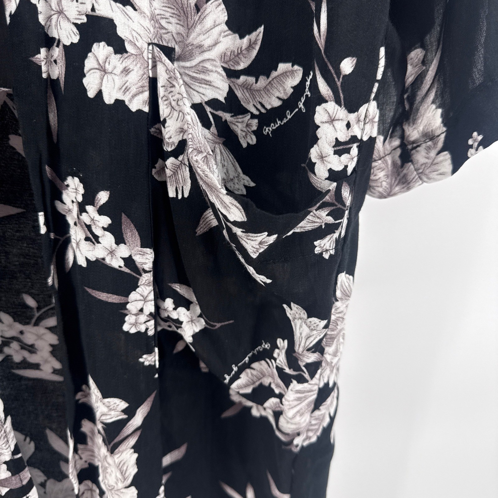 как выглядит Spiritual Gangster Maya Black Floral Print Kimono OS One Size Boho Tie Front фото