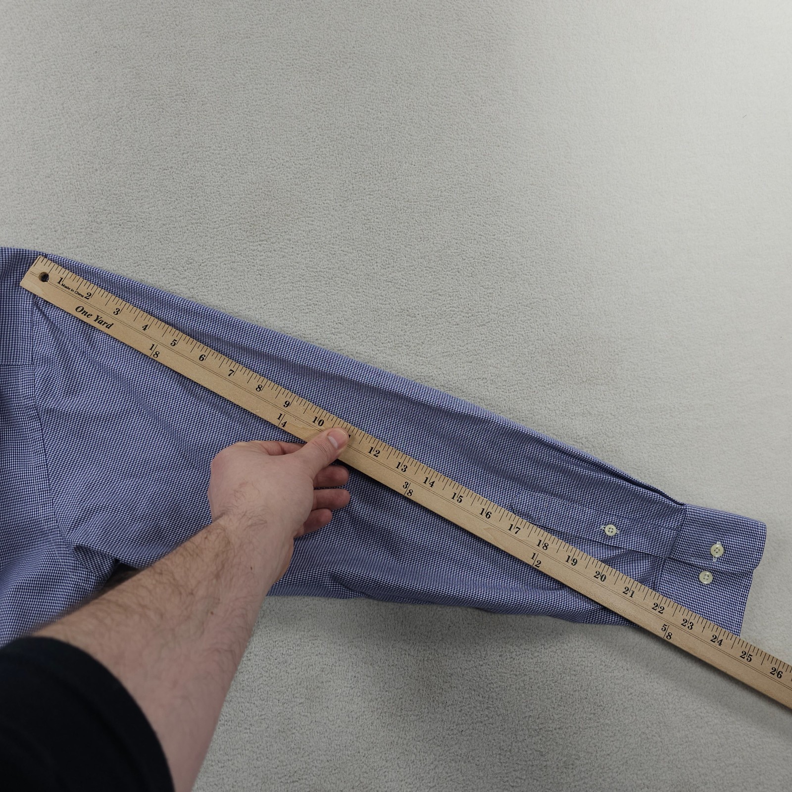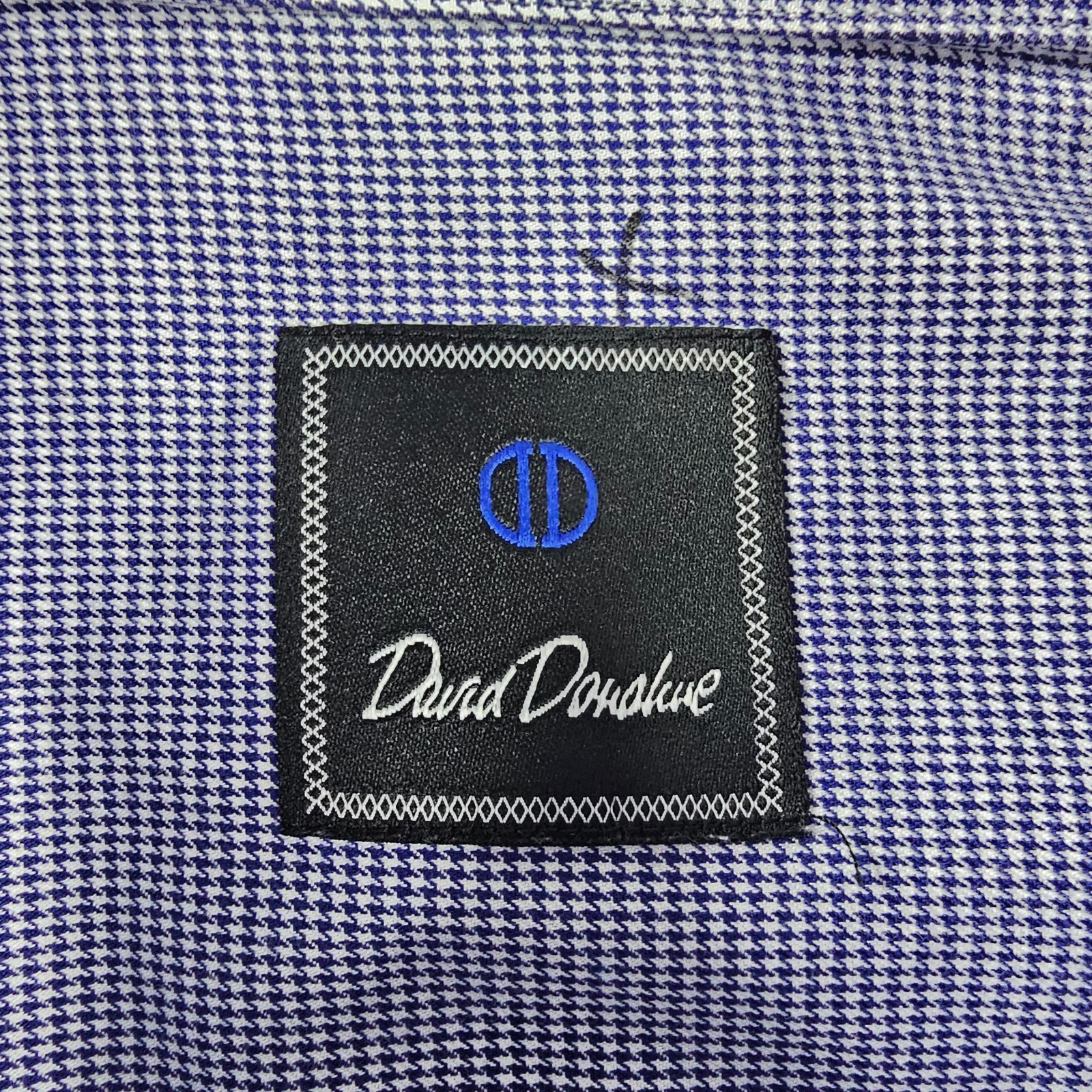 как выглядит David Donahue Dress Shirt Mens 17 Blue Houndstooth Long Sleeve Button Up Formal фото