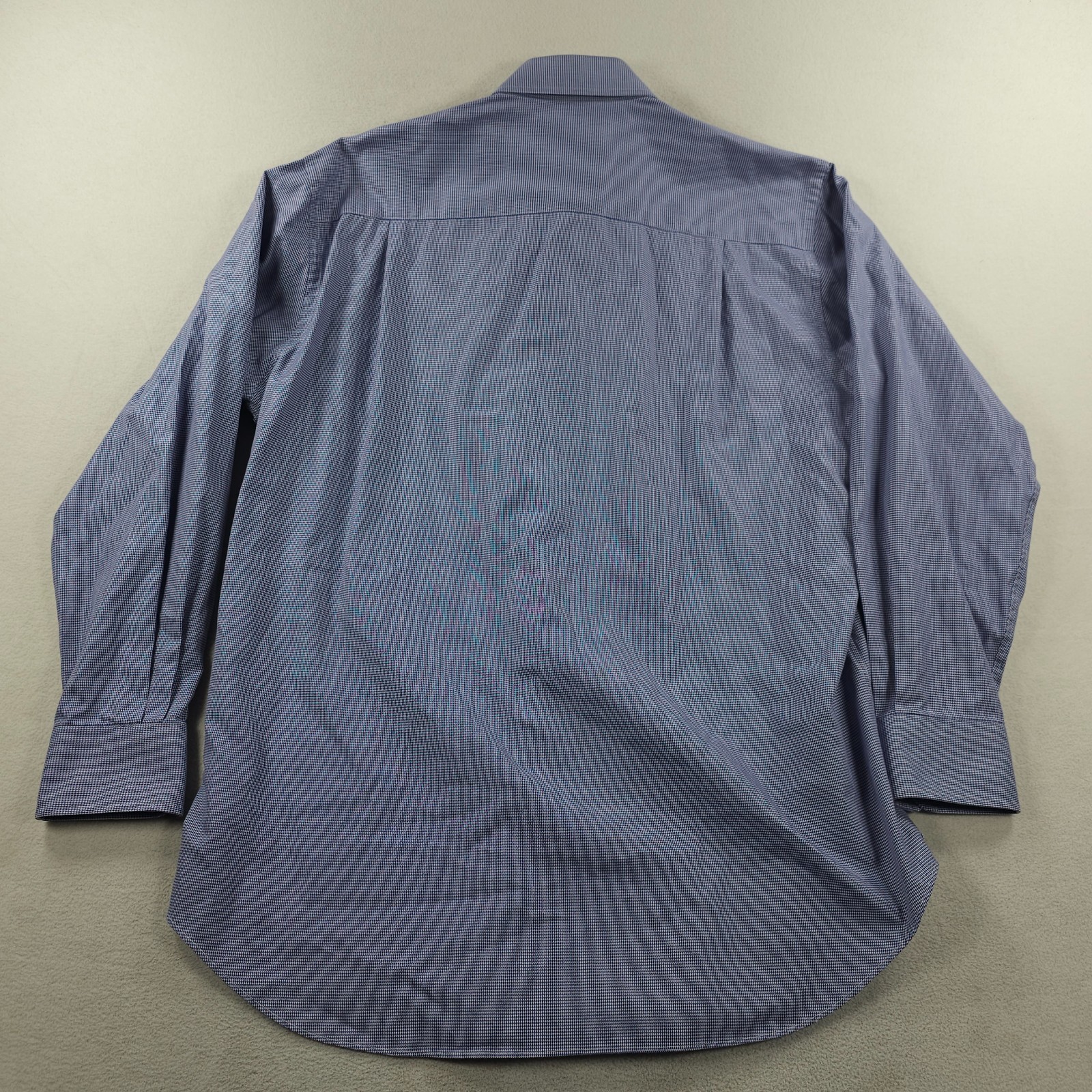 David Donahue Dress Shirt Mens 17 Blue Houndstooth Long Sleeve Button Up Formal