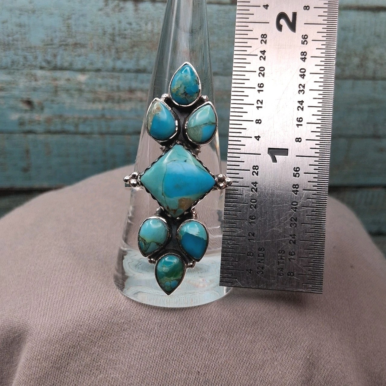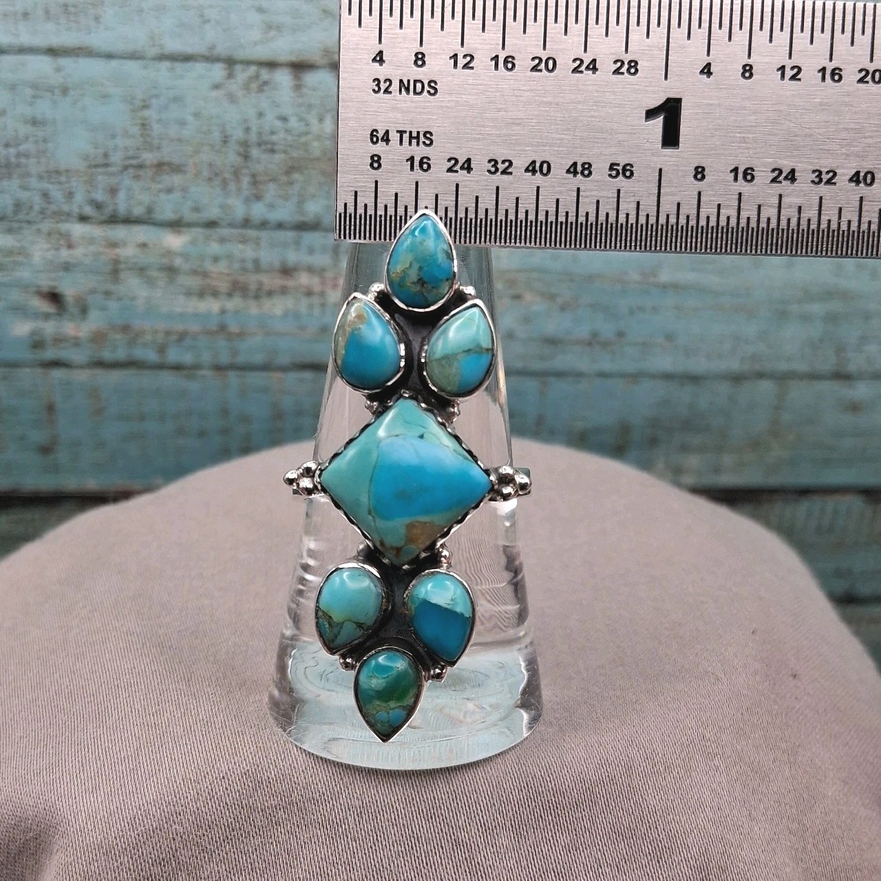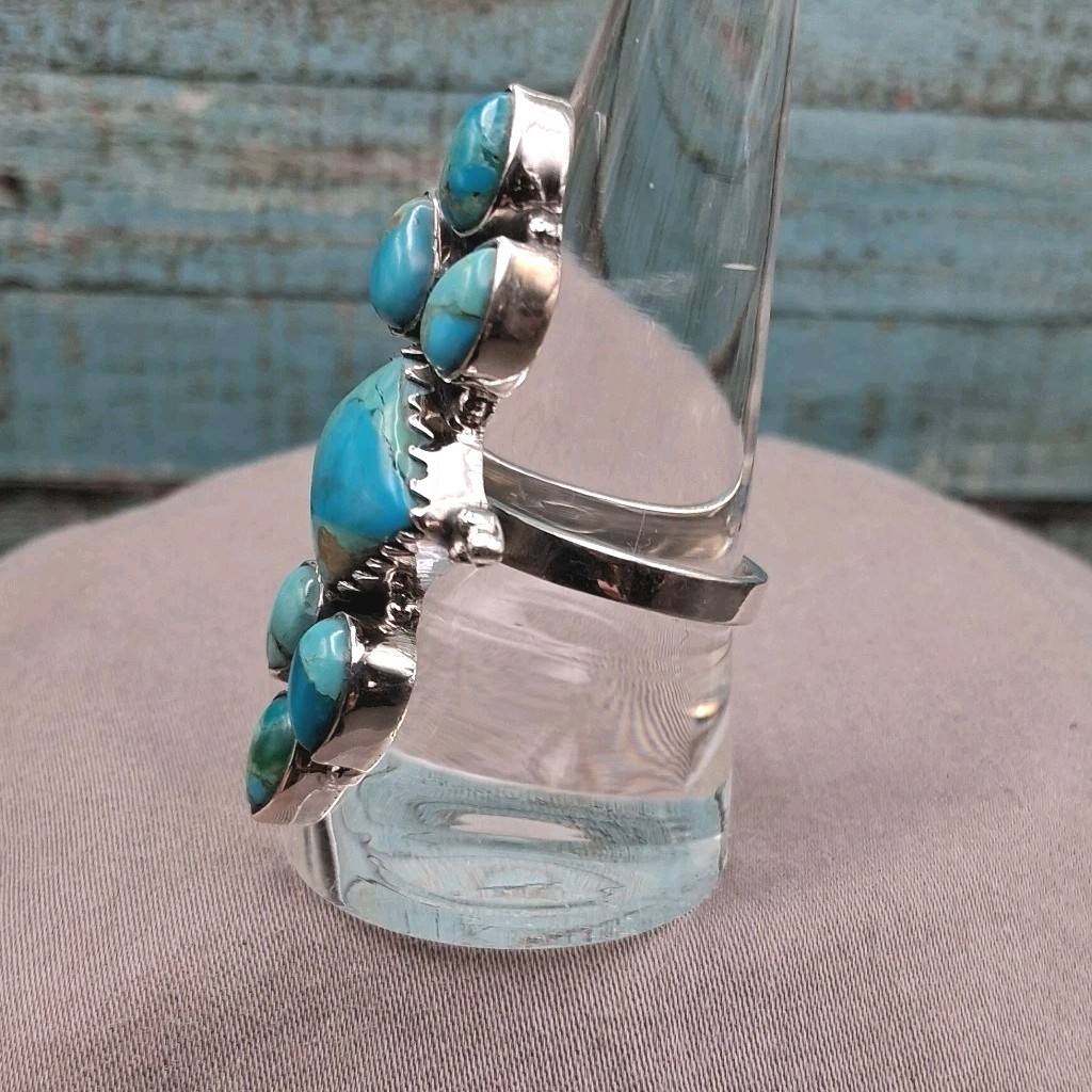 как выглядит Southwestern Style Mohave Turquoise Cluster Ring Size 5.5-9 Sterling Silver фото