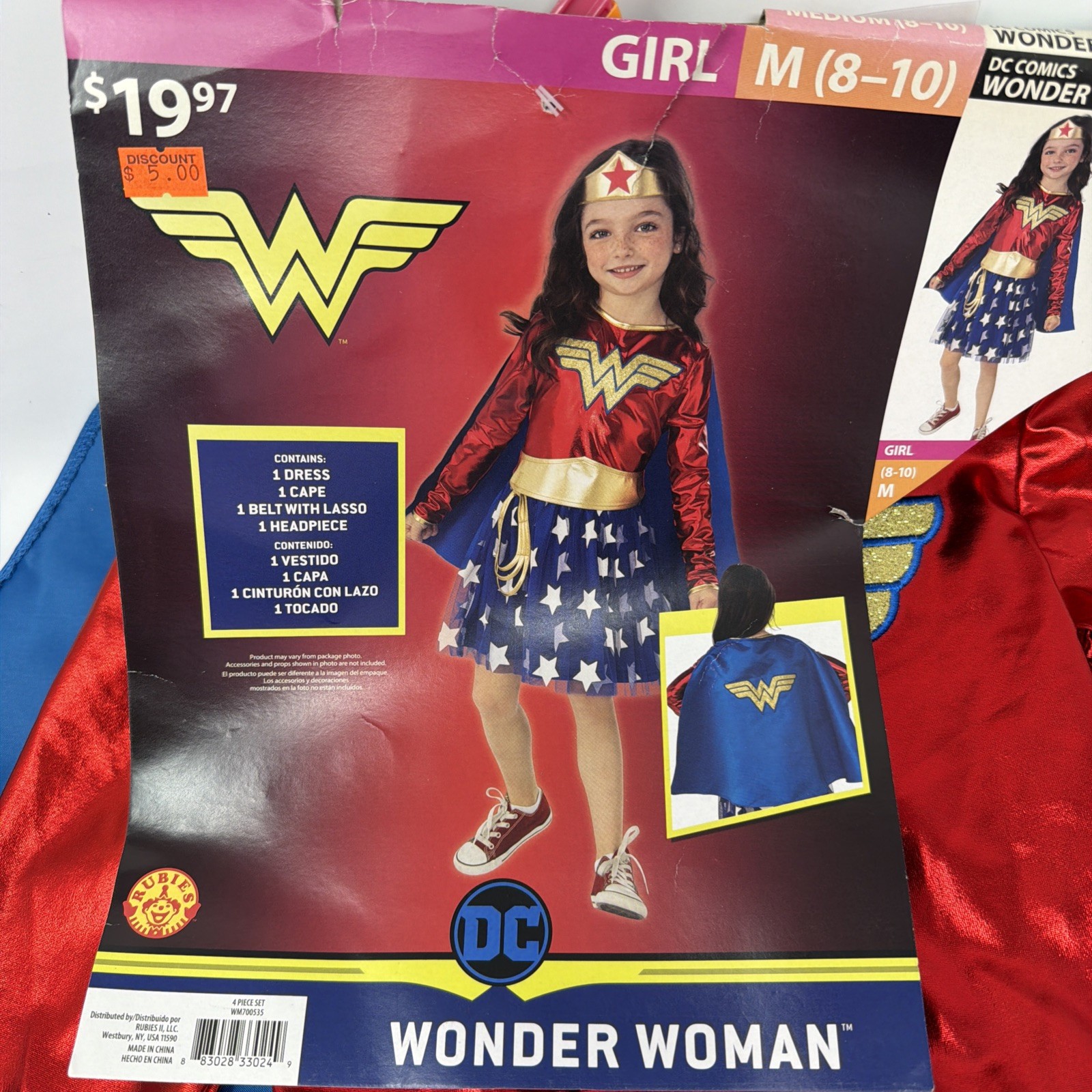 Wonder Women Costume Girls Medium 8-10 Complete New With Tags W Lasso Headband