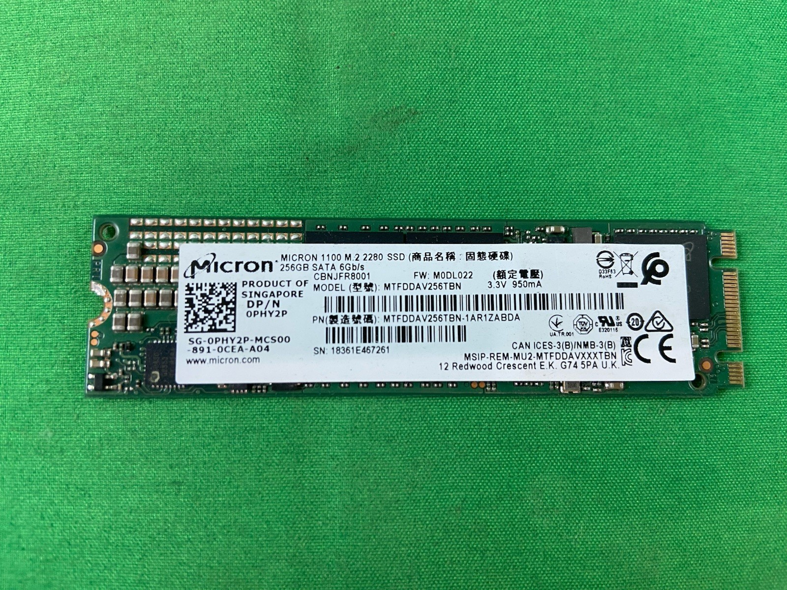 LOT of 10 SATA M.2 256GB SSD Various Brands SAMSUNG TOSHIBA SANDISK MICRON