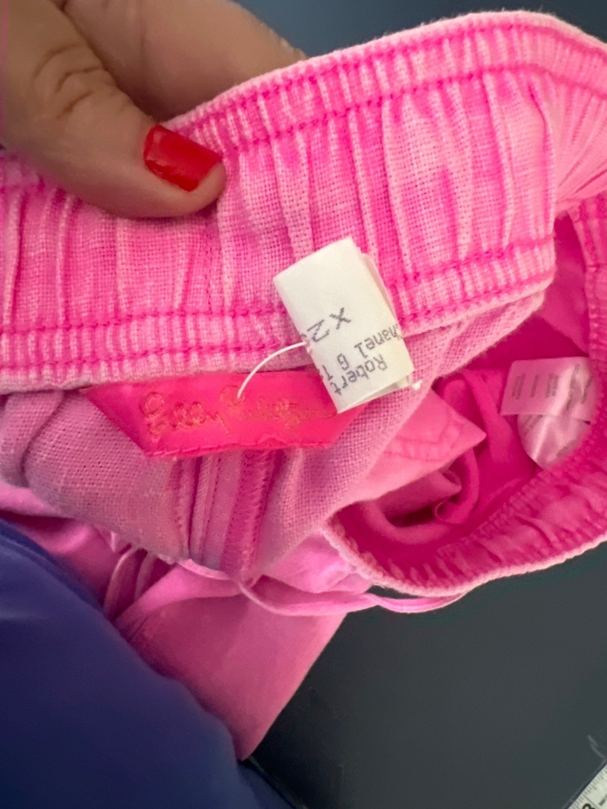 как выглядит Lilly Pulitzer Linen Pants XS Pink Drawstring Beach Boho Chic Resort фото