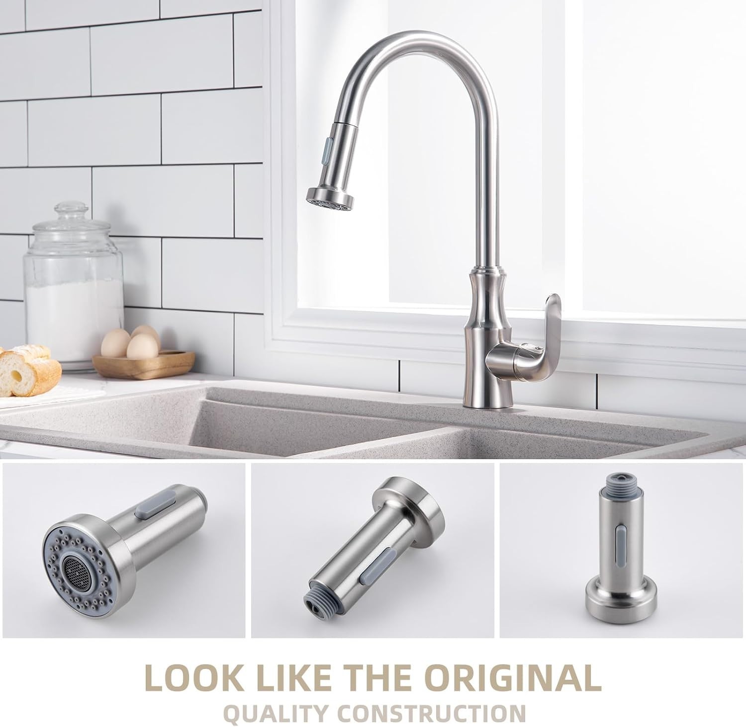 как выглядит Kitchen Sink Sprayer Replacement Faucet Head Stream Spray Mode Brushed Nickel EZ фото